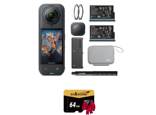 Camera 360° 8K Insta360 X5 Essentials Bundle nâng cấp với khả năng quay HDR 8K30 360° và công nghệ ánh sáng yếu được tăng cường PureVideo ở chế độ ống kính kép hoặc ống kính đơn, tất cả trong một camera hành động di động. Phiên bản Essentials Bundle này bao gồm máy quay X5, bộ bảo vệ ống kính, 2 pin, nắp ống kính, hộp đựng, hộp sạc nhanh và gậy selfie 114cm.