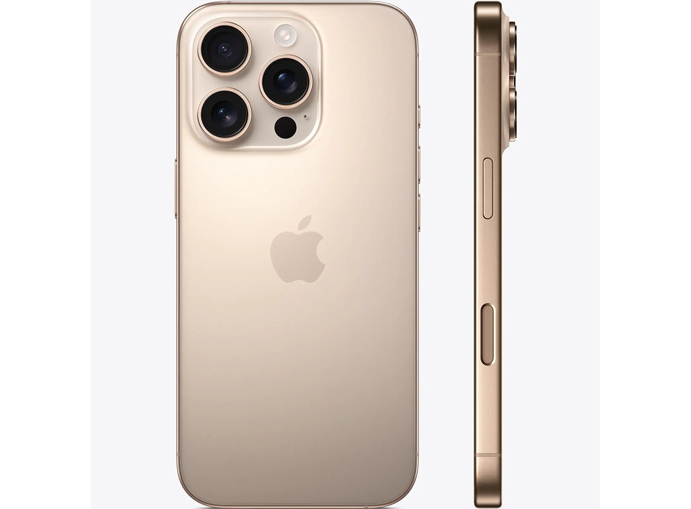 iPhone 16 Pro Max có thiết kế titan Cấp 5 với lớp hoàn thiện mới, tinh tế được xử lý bề mặt vi điểm. Titan là một trong những kim loại có tỷ số độ bền và trọng lượng cao nhất, giúp phiên bản này cực kỳ cứng cáp và nhẹ ấn tượng. iPhone 16 Pro Max có bốn màu tuyệt đẹp, bao gồm màu Titan Sa Mạc mới.