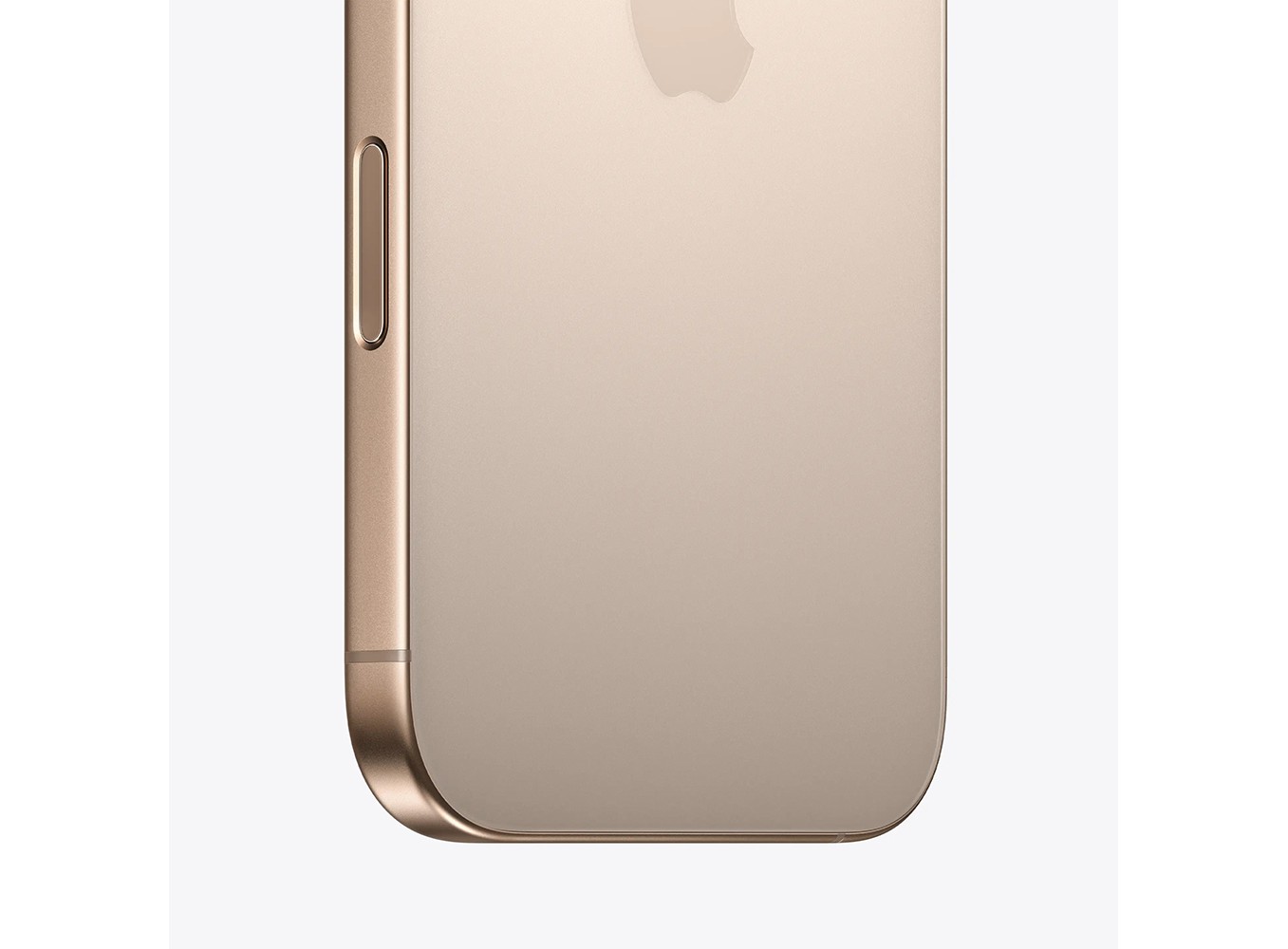 iPhone 16 Pro Max có thiết kế titan Cấp 5 với lớp hoàn thiện mới, tinh tế được xử lý bề mặt vi điểm. Titan là một trong những kim loại có tỷ số độ bền và trọng lượng cao nhất, giúp phiên bản này cực kỳ cứng cáp và nhẹ ấn tượng. iPhone 16 Pro Max có bốn màu tuyệt đẹp, bao gồm màu Titan Sa Mạc mới.