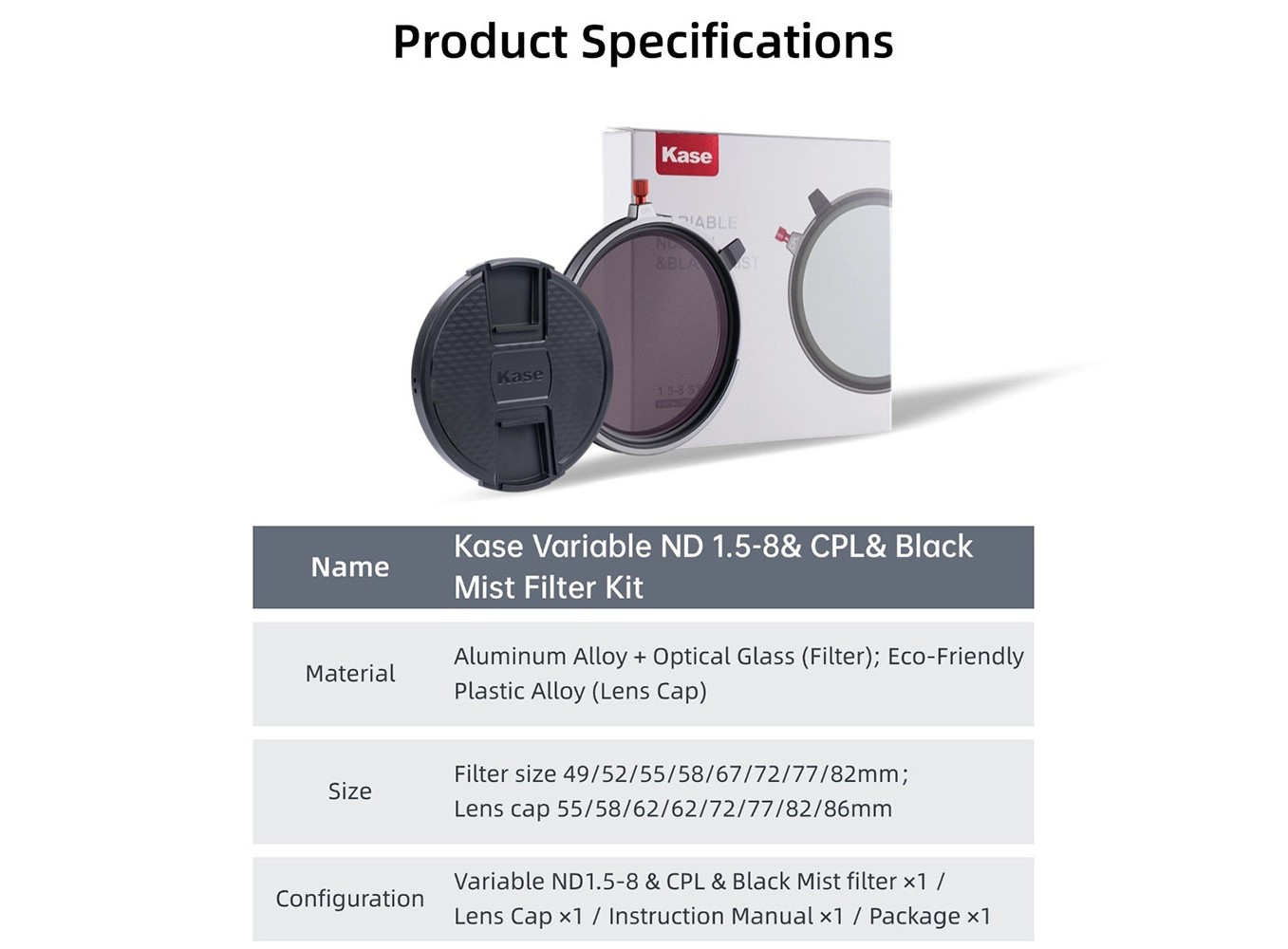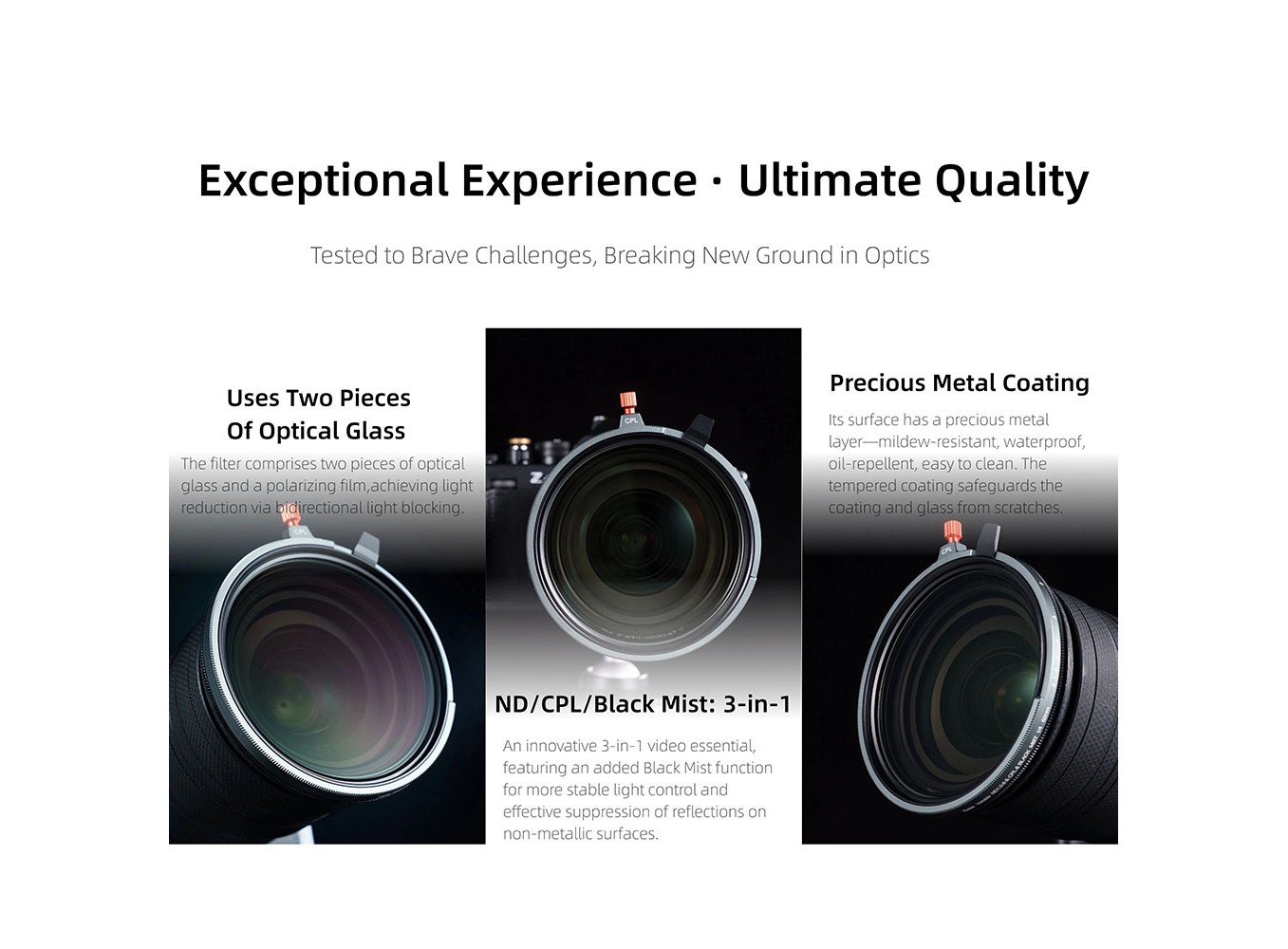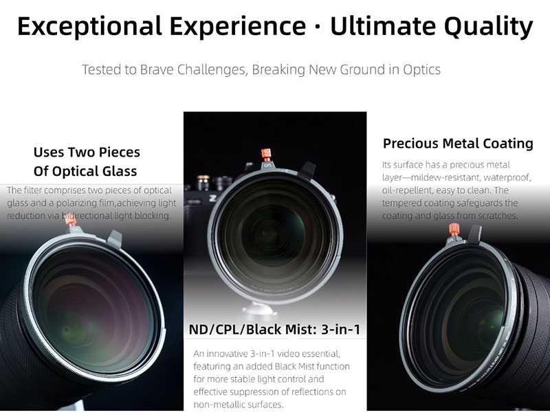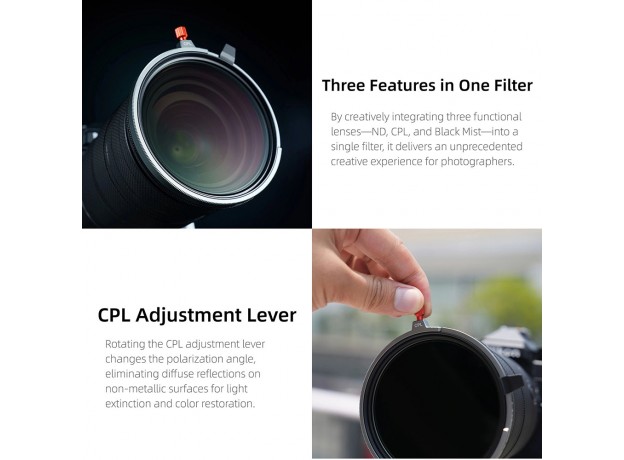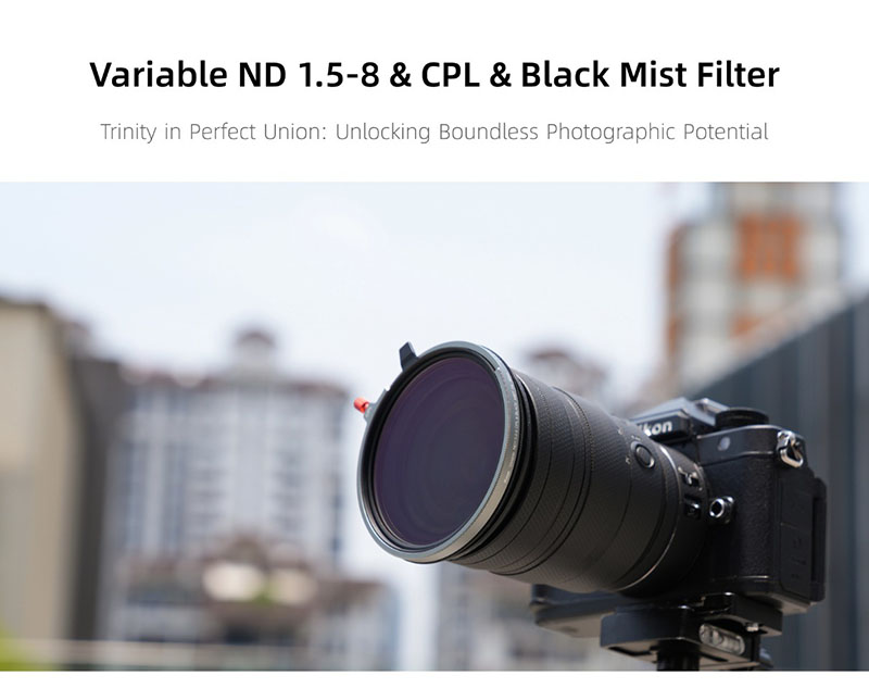 - - Bộ lọc 3 trong 1 VND & CPL & Black Mist và nắp ống kính dạng bật