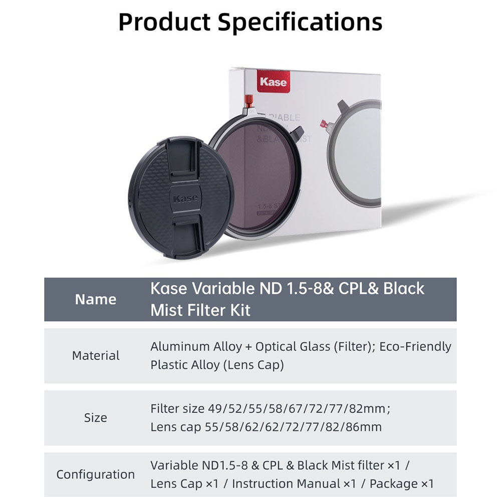 Kính lọc Kase Variable ND & CPL & Black Mist 1.5-8 stop 3-in-1 (46mm)