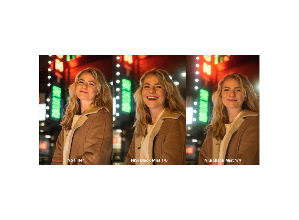Tạo nên bầu không khí hoàn hảo cho nhiếp ảnh hoặc quay phim của bạn với bộ lọc NiSi Black Mist. Bộ lọc Black Mist tạo hiệu ứng ánh sáng huyền ảo xung quanh các nguồn sáng trong khi vẫn giữ được độ rõ nét của hình ảnh. Có được vẻ ngoài điện ảnh với khả năng giảm độ tương phản, làm mờ và làm dịu ánh sáng từ các nguồn sáng mạnh, đồng thời làm mịn các khuyết điểm mà không ảnh hưởng đến cân bằng màu sắc. Hãy mang đến cho hình ảnh hoặc video của bạn vẻ ngoài Black Mist.