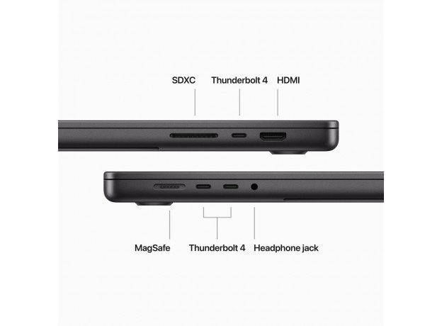 • - 3 cổng Thunderbolt 4, khe thẻ nhớ SDXC, cổng HDMI, giắc âm thanh, cổng MagSafe 3