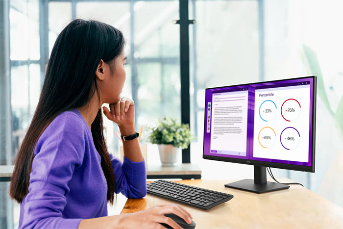 Giảm thiểu tiếp xúc với ánh sáng xanh có hại mà không làm giảm độ chính xác của màu sắc với ComfortView Plus tích hợp sẵn, luôn bật của Dell.