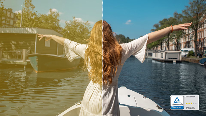 Cảm nhận sự khác biệt khi ComfortView Plus giúp giảm bớt sắc vàng để đảm bảo độ trung thực màu sắc tốt hơn, so với kết quả của công nghệ giảm ánh sáng xanh được kích hoạt bằng phần mềm.