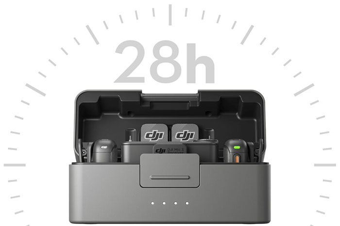 Bộ phát kéo dài 8 giờ, bộ thu 10 giờ và hộp sạc cung cấp tổng cộng 28 giờ sử dụng. Sạc 5 phút cho 2 giờ sử dụng, giúp bạn luôn sẵn sàng sáng tạo. Nhiều tính năng tiết kiệm năng lượng và hỗ trợ ghi âm trong khi sạc giúp bạn luôn tràn đầy năng lượng cả ngày.