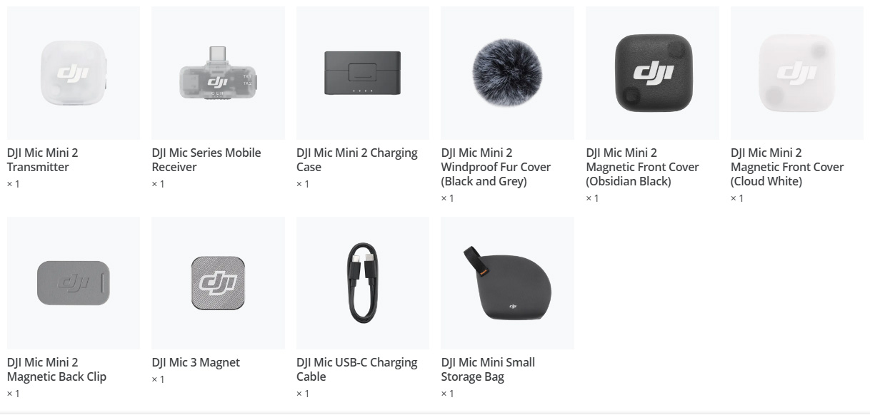 DJI Mic Mini 2 tương thích với các phụ kiện như 8 màu vỏ trước từ tính và 5 màu vỏ lông chắn gió, giúp dễ dàng phối hợp với nhiều trang phục khác nhau và trông nổi bật hơn. Ngoài ra còn có phiên bản bộ thu di động cắm chạy của dòng DJI Mic và bộ chuyển đổi hot shoe của dòng DJI Mic, giúp quá trình sáng tạo trở nên mượt mà hơn.