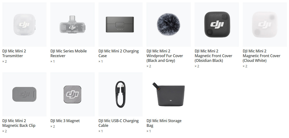 DJI Mic Mini 2 tương thích với các phụ kiện như 8 màu vỏ trước từ tính và 5 màu vỏ lông chắn gió, giúp dễ dàng phối hợp với nhiều trang phục khác nhau và trông nổi bật hơn. Ngoài ra còn có phiên bản bộ thu di động cắm chạy của dòng DJI Mic và bộ chuyển đổi hot shoe của dòng DJI Mic, giúp quá trình sáng tạo trở nên mượt mà hơn.