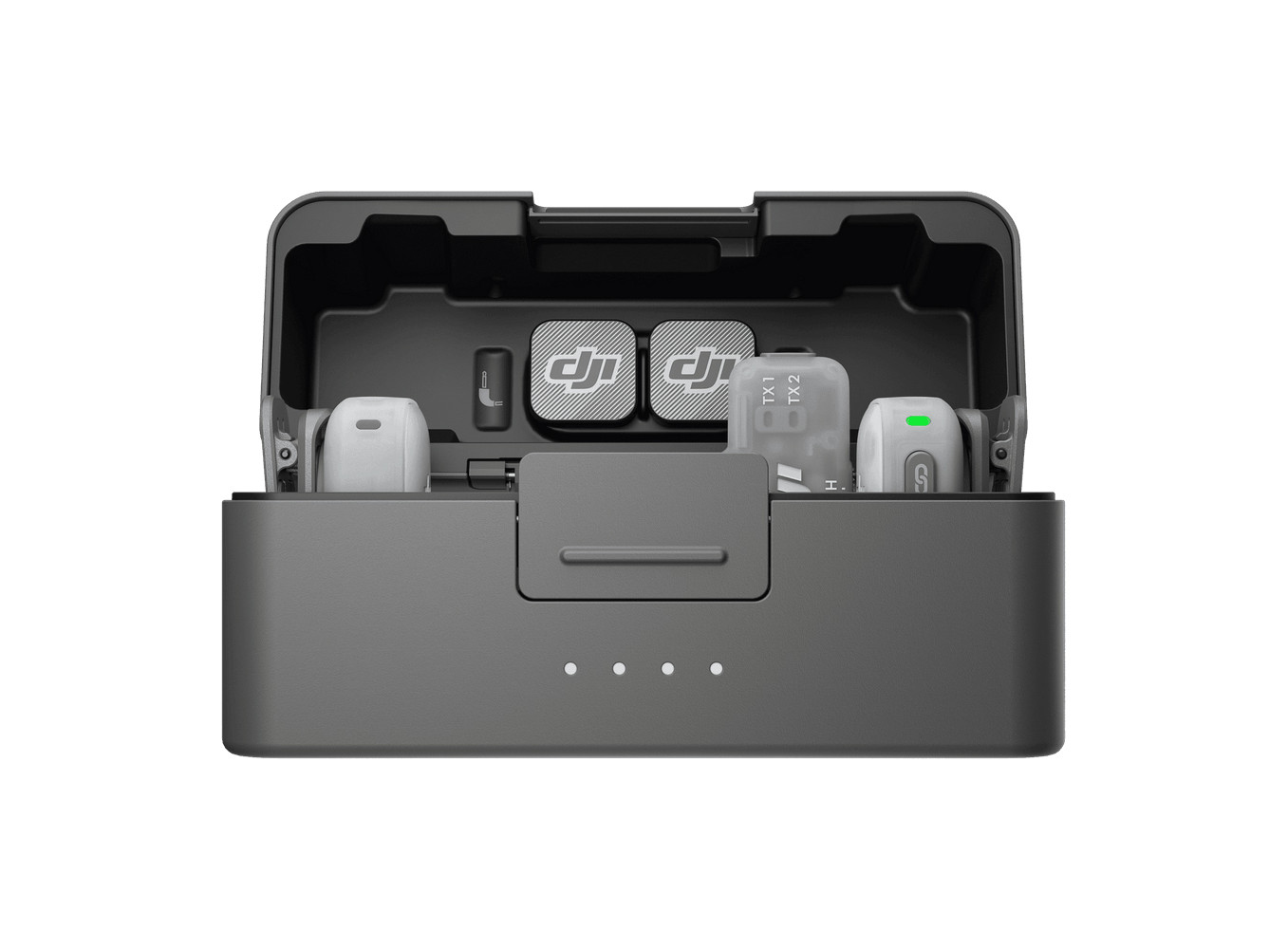 Hộp sạc hai ngăn, một lần thu gọn có thể chứa hai bộ phát và một bộ thu. Bộ phát có thể được cất giữ cùng với vỏ chống gió, và không cần tháo nam châm hoặc kẹp từ tính khi gắn vào. Khi cất giữ bộ phát có kẹp lưng, nam châm và cáp TRS 3.5mm cũng có thể được cất giữ bên trong nắp, giúp dễ dàng mang theo và sử dụng khi di chuyển. Phiên bản di động mới của hộp sạc là loại một ngăn, một lần thu gọn, được thiết kế cho các tình huống di động, có thể chứa một bộ phát và một bộ thu di động để đáp ứng nhu cầu ghi âm đa dạng bằng điện thoại di động.