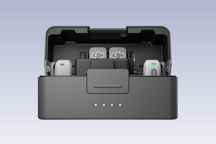 Hộp sạc hai ngăn, một lần thu gọn có thể chứa hai bộ phát và một bộ thu. Bộ phát có thể được cất giữ cùng với vỏ chống gió, và không cần tháo nam châm hoặc kẹp từ tính khi gắn vào. Khi cất giữ bộ phát có kẹp lưng, nam châm và cáp TRS 3.5mm cũng có thể được cất giữ bên trong nắp, giúp dễ dàng mang theo và sử dụng khi di chuyển. Phiên bản di động mới của hộp sạc là loại một ngăn, một lần thu gọn, được thiết kế cho các tình huống di động, có thể chứa một bộ phát và một bộ thu di động để đáp ứng nhu cầu ghi âm đa dạng bằng điện thoại di động.