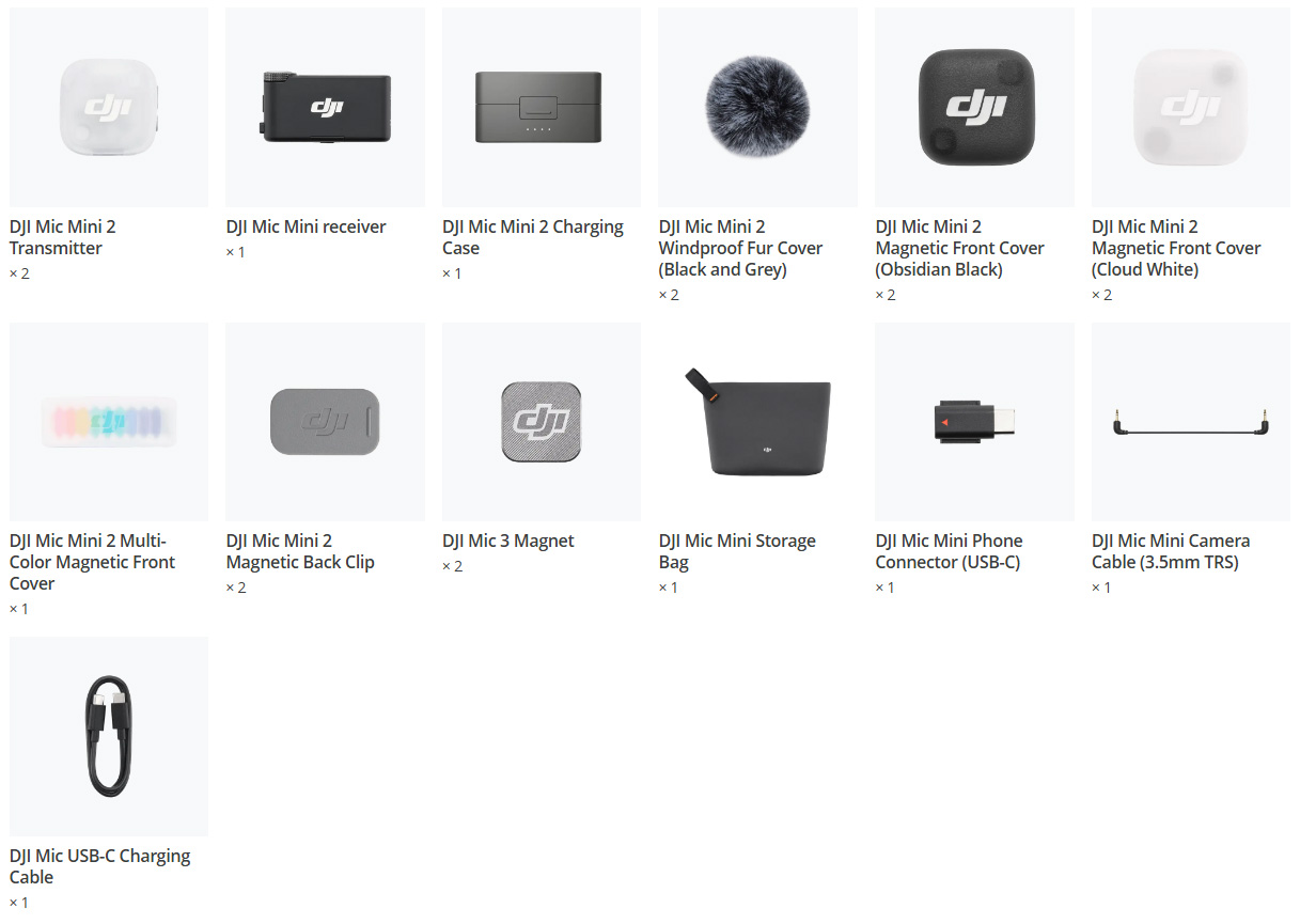 DJI Mic Mini 2 cung cấp 8 màu vỏ trước từ tính và 5 màu vỏ lông chắn gió, giúp dễ dàng phối hợp với nhiều trang phục khác nhau và trông nổi bật hơn. Ngoài ra còn có phiên bản bộ thu di động cắm chạy của dòng DJI Mic và bộ chuyển đổi hot shoe của dòng DJI Mic, giúp quá trình sáng tạo trở nên mượt mà hơn.