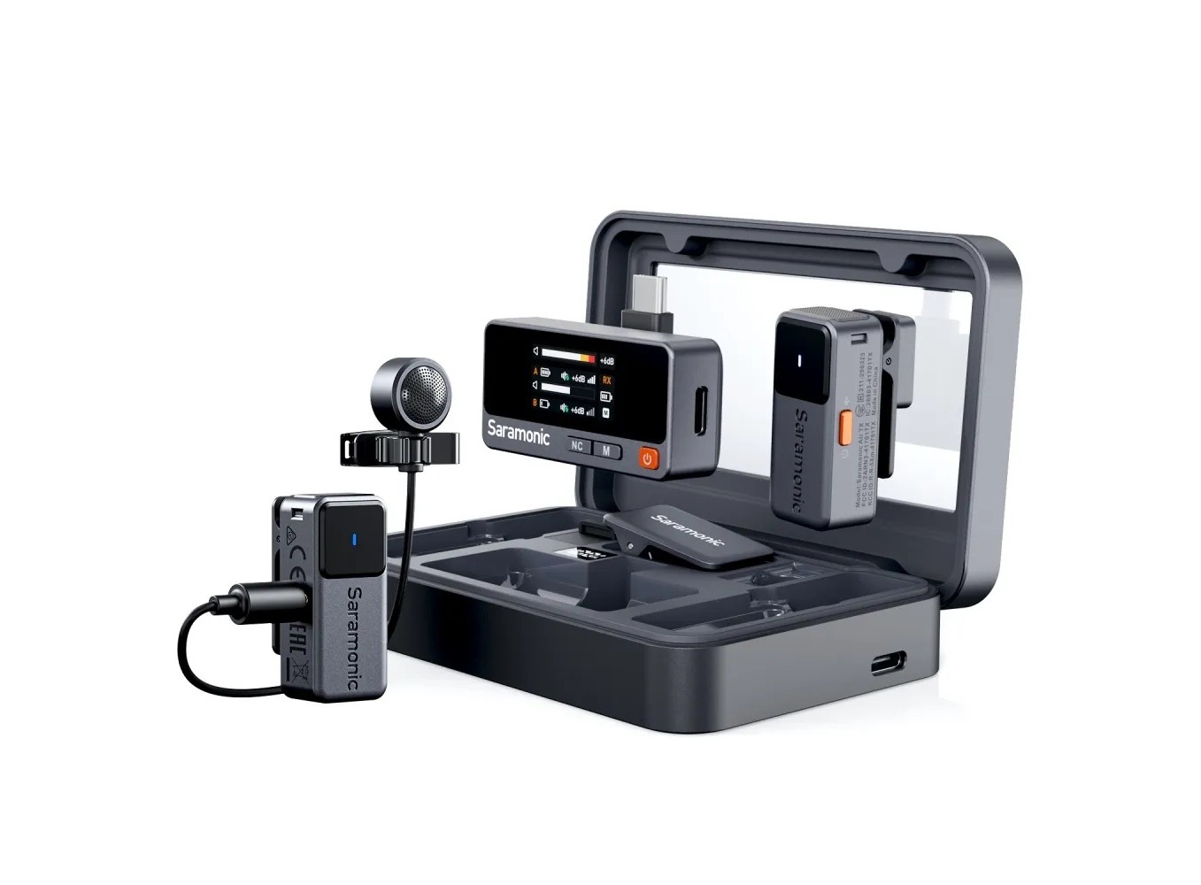 Saramonic Air mang đến phong cách retro táo bạo. Chỉ nặng 11g, mic kẹp lên nhẹ và sạch với kiểu dáng màu xám thiên hà. Các nút bấm xúc giác tạo nên cảm giác vui tươi của thập niên 90. Hộp sạc kim loại cũng nổi bật — với cửa sổ phía trên trong suốt giúp bạn có thể nhìn thấy mọi thứ.
