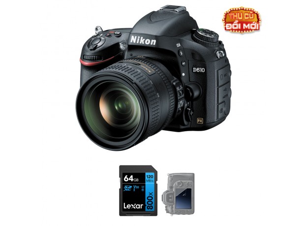 Máy ảnh Nikon D610 - Máy ảnh DSLR có tính năng full-frame, định dạng FX, cảm biến 24.3 megapixel CMOS và bộ xử lý hình ảnh EXPEED 3 để cho ảnh có độ phân giải cao, quay video Full HD 1080p với các chi tiết hình ảnh đáng chú ý và nhạy cảm với ánh sáng, tiêu chuẩn ISO mở rộng 25600. Các cảm biến và bộ vi xử lý làm việc cùng nhau, cho phép chất lượng hình ảnh cao với một phạm vi rộng. Tốc độ xử lý trong Nikon D610 cực nhanh, trong đó có một tốc độ chụp liên tục 6 khung hình và một chế độ chụp yên tĩnh cho phép máy ảnh ghi lại các hình ảnh liên tục mà không cần nâng cao hoặc hạ thấp gương.