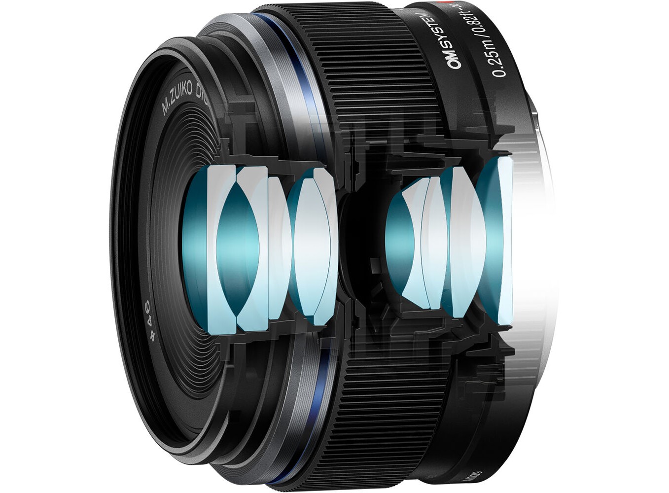 Ống kính có thấu kính DSA (Dual Super Aspheric) và HR (High Refractive Index) để giảm quang sai. Với 9 thành phần thấu kính trong 6 nhóm, ống kính này mang lại chất lượng hình ảnh và độ phân giải cao trong thiết kế nhỏ gọn, nhẹ (37,6mm, 112g).