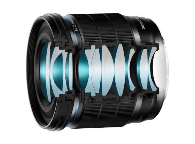 Nếu bạn có thể nhìn vào bên trong ống kính của Olympus, bạn sẽ thấy một nhóm mạnh mẽ gồm các loại kính cắt chính xác đẳng cấp thế giới được thiết kế để mang lại hình ảnh có độ phân giải cao với độ sắc nét tuyệt vời. Có 11 thành phần thấu kính trong 10 nhóm, bao gồm các thấu kính Super HR, Super ED và ED cùng với thấu kính phi cầu.