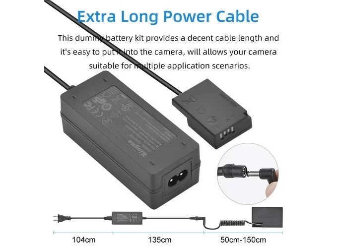 Thiết kế thân pin vừa với máy ảnh, cắm vào và lấy ra thoải mái, không bị kẹt. Cắm viên pin vào ngăn chứa pin, đóng kín nắp ngăn chứa pin trước khi sử dụng, kết nối pin có dây với đầu nối nguồn, cắm vào ổ điện qua dây xoay chiều và kết nối bộ chuyển đổi nguồn bên ngoài.