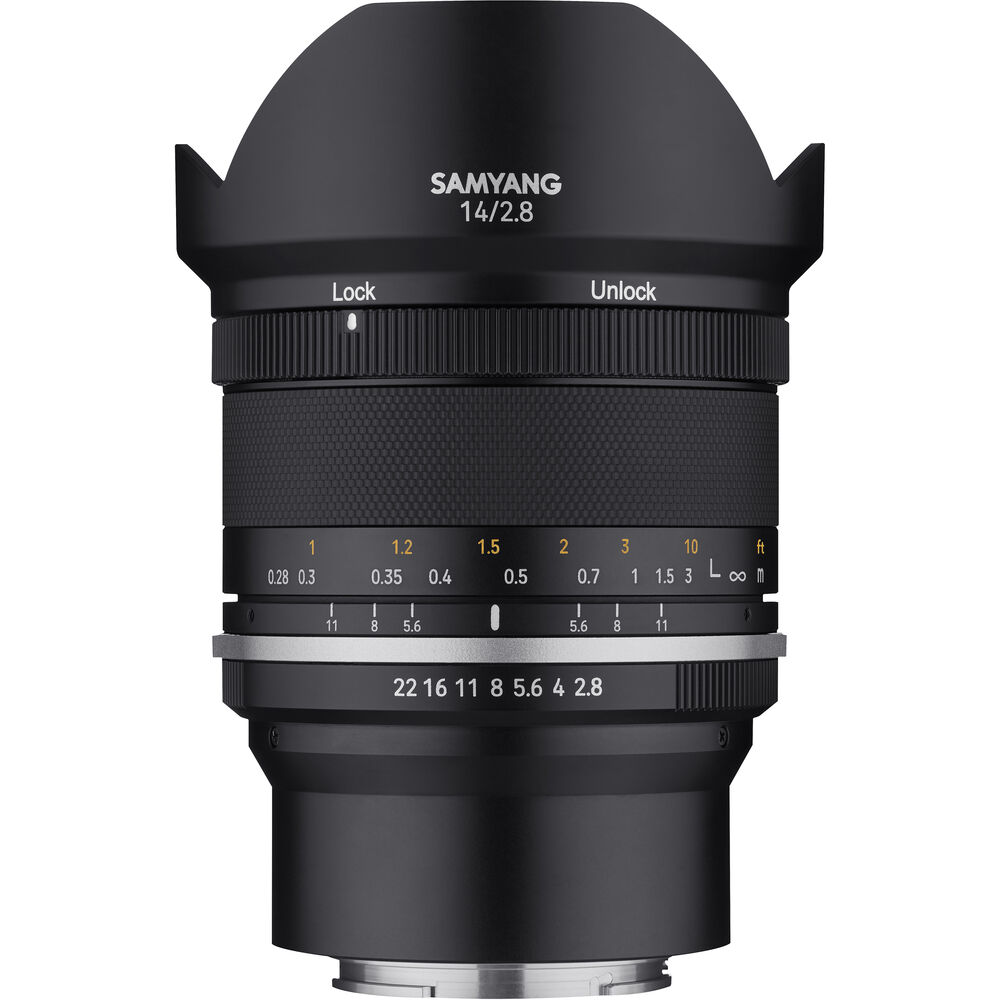 Samyang MF 14mm f/2.8 MK2 FE là ống kính một tiêu cự góc siêu rộng với khả năng sử dụng được cải tiến. Ống kính này tích hợp chức năng khóa lấy nét và khử tiếng nhấp cùng với lớp chống chịu thời tiết và vòng cao su có hoa văn siêu nhỏ. Đây là ống kính góc siêu rộng, lấy nét thủ công với độ sắc nét tuyệt vời, ngay cả ở khẩu độ tối đa. Góc nhìn rộng 115,7˚ phù hợp để chụp phong cảnh, nội thất... và loa che nắng chặn hiệu quả ánh sáng không mong muốn để bạn có thể chụp thoải mái.
