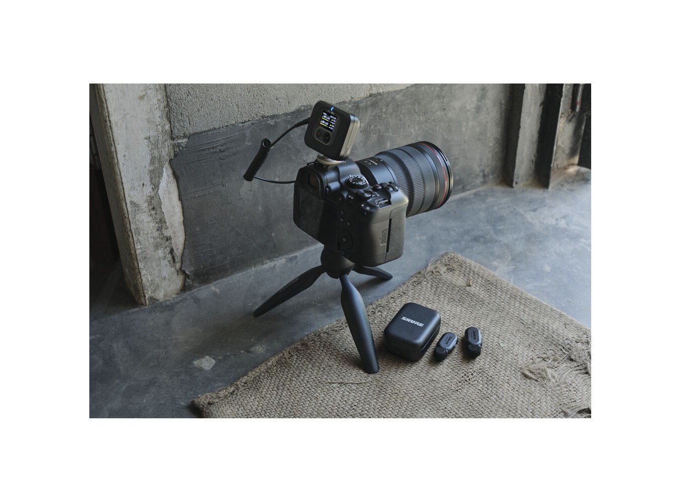 - Hệ thống micrô không dây hai kênh kèm bộ thu để sử dụng với máy ảnh, máy tính và kết nối trực tiếp với điện thoại. Kết nối cả hai micrô trực tiếp với thiết bị iOS hoặc Android của bạn bằng ứng dụng Shure MOTIV Video hoặc Audio hoặc với bộ thu MoveMic để sử dụng với máy ảnh và ứng dụng di động của bên thứ ba.