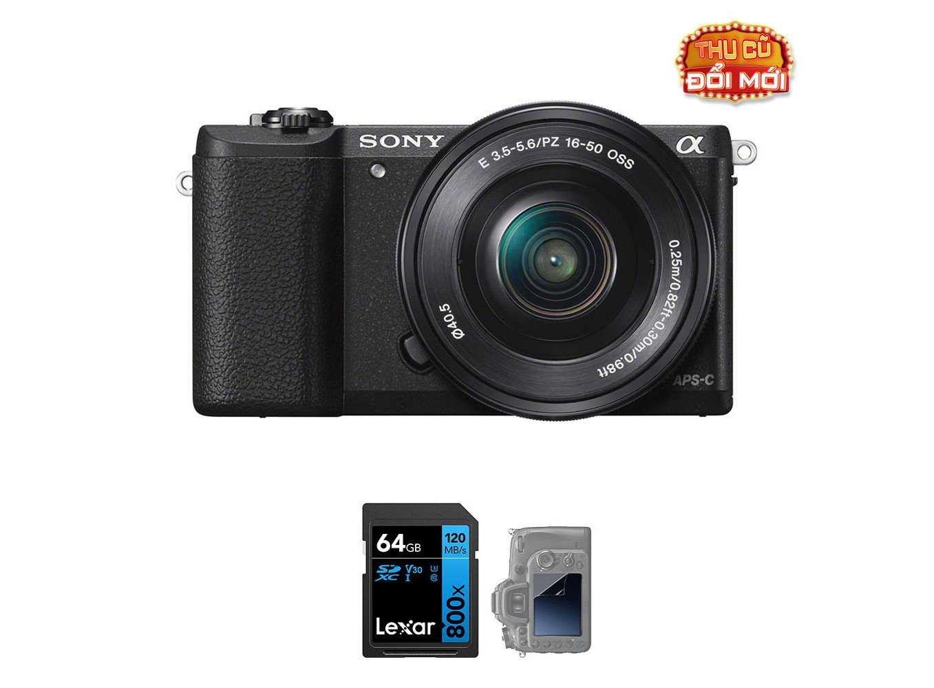 A5100 được bán kèm với lens zoom Sony 16-50mm f/3.5-5.6 OSS. Ống kính cung cấp tiêu cự tương đương 24-75mm (trên định dạng 35mm). Phạm vi tiêu cự này rất phù hợp với việc quay phim, chụp ảnh bình thường hằng ngày. Ống kính có trang bị cơ chế ổn định hình ảnh quang học nhằm giảm thiểu sự rung máy. Một công nghệ tiên tiến, cơ chế zoom điện cũng có tích hợp trên ống kính, cho phép kiểm soát điện tử khi zoom. Kit 16-50mm f/3.5-5.6 OSS bao gồm 1 thấu kính phân tán cực thấp và 4 thấu kính phi cầu, giúp giảm thiểu sự sai lệch màu sắc trong suốt dải zoom cũng như góp phần tăng độ nét. Ống kính này có thể thu vào để ống kính gọn hơn.