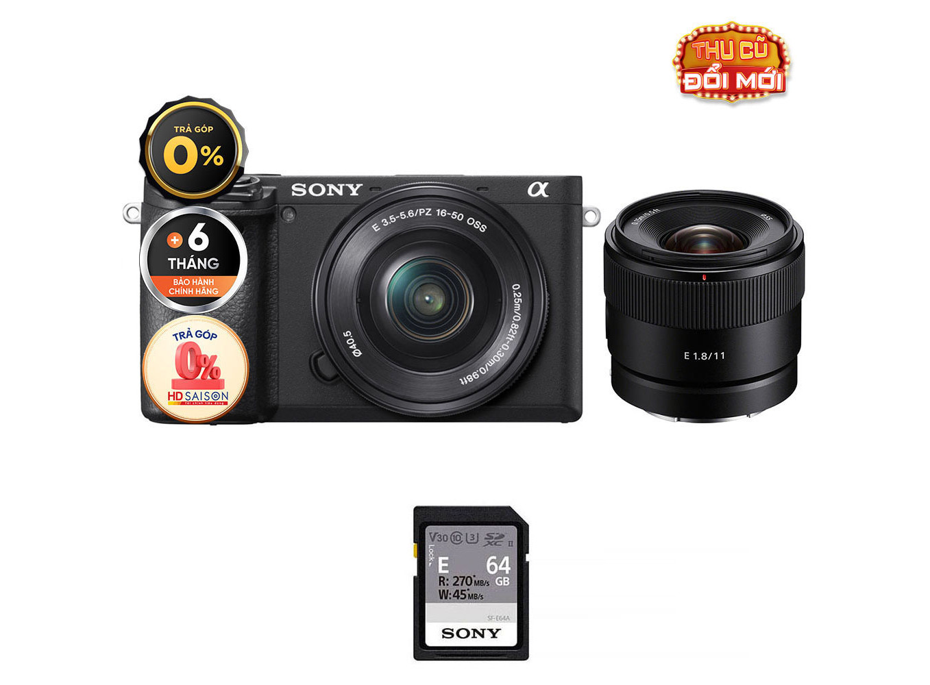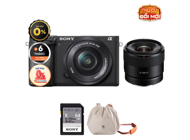 Sony A6400 + E 11mm f/1.8 (Chính hãng) (Kit 16-50mm + Sony E 11mm f/1.8, Thẻ Nhớ 64GB + Túi Máy Ảnh)