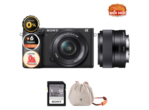 Sony A6400 + E 35mm f/1.8 (Chính hãng) (Kit 16-50mm + Sony E 35mm f/1.8, Thẻ Nhớ 64GB + Túi Máy Ảnh)