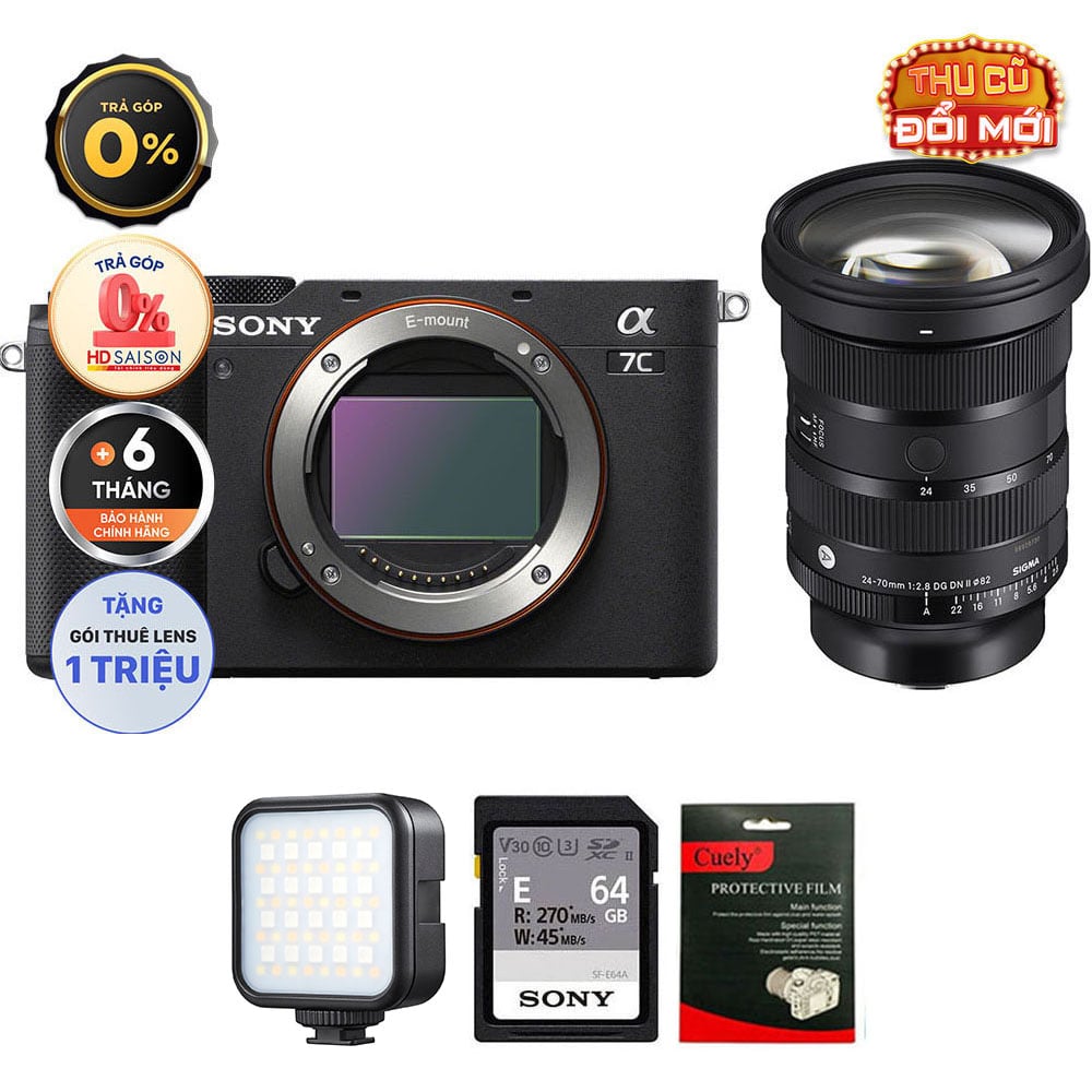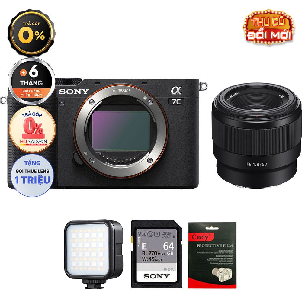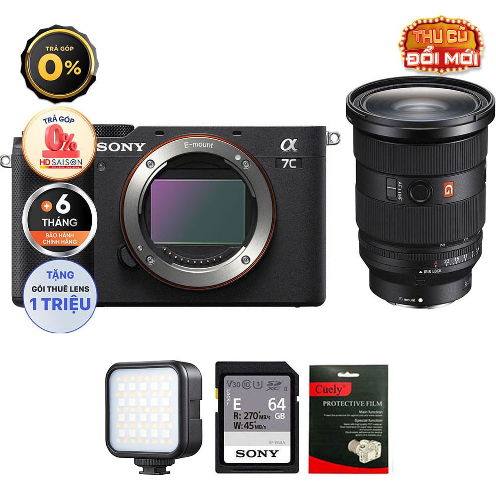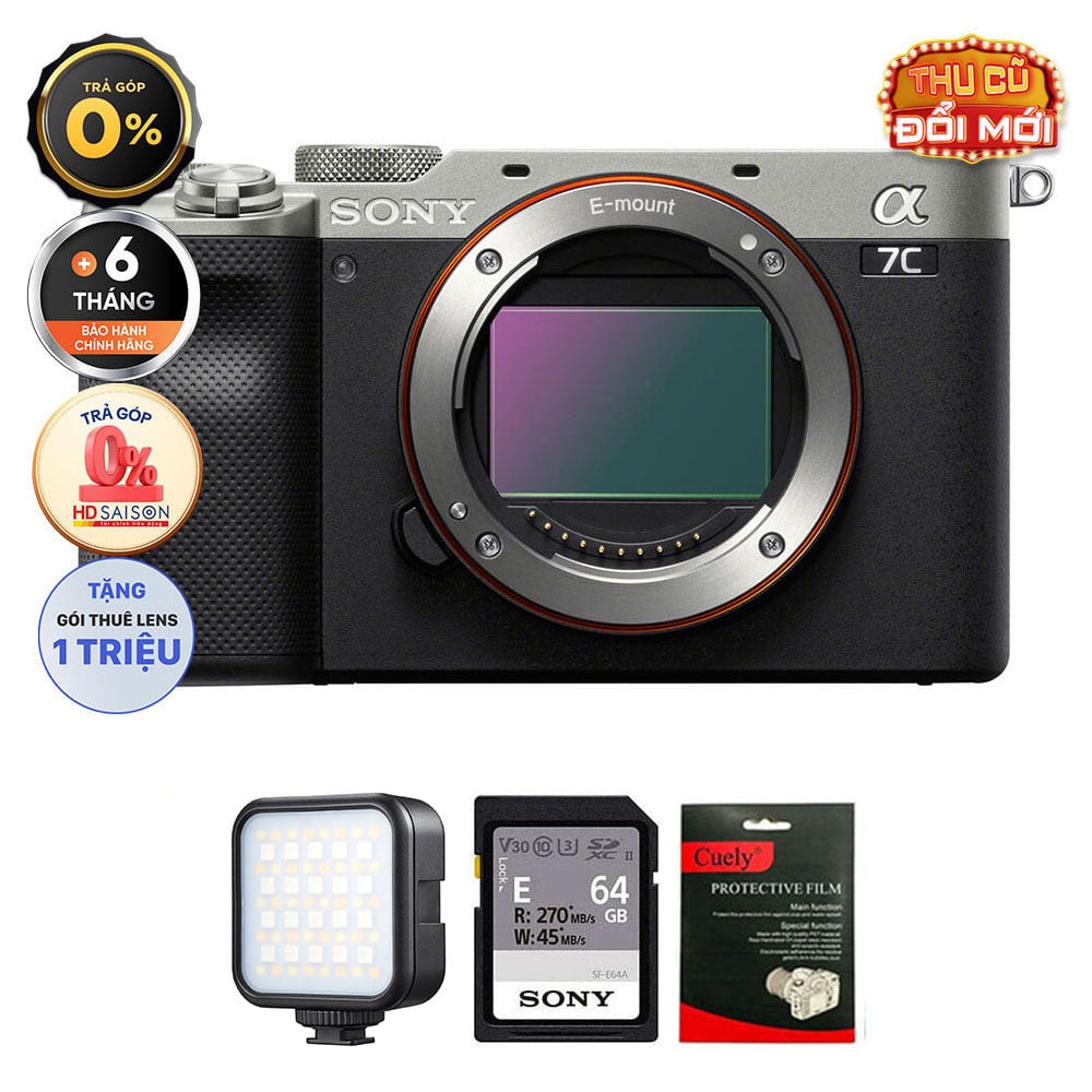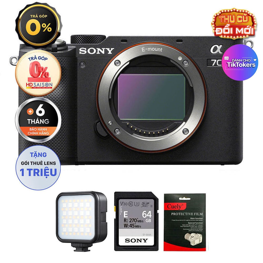 Sony A7C (Chính hãng) (Body Only, Black, Thẻ Nhớ 64GB + Đèn LED)
