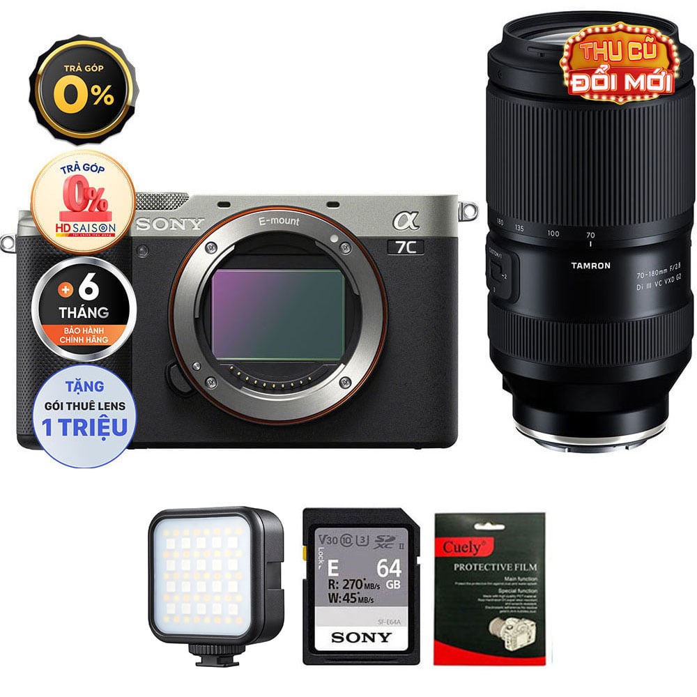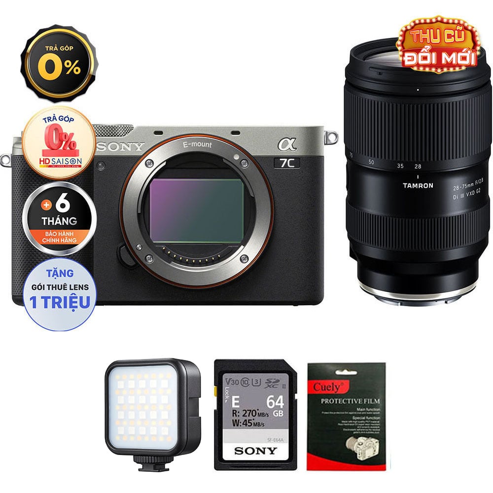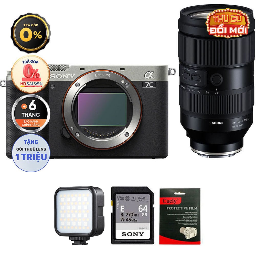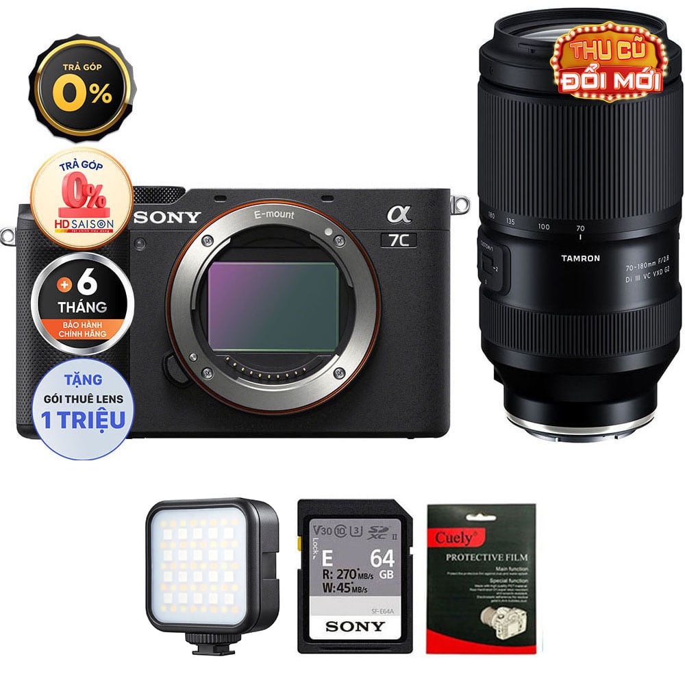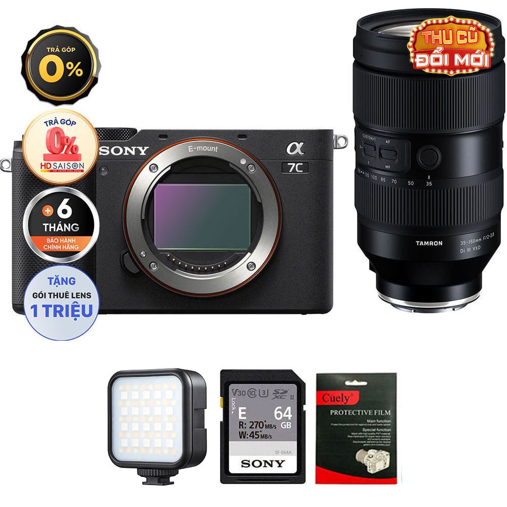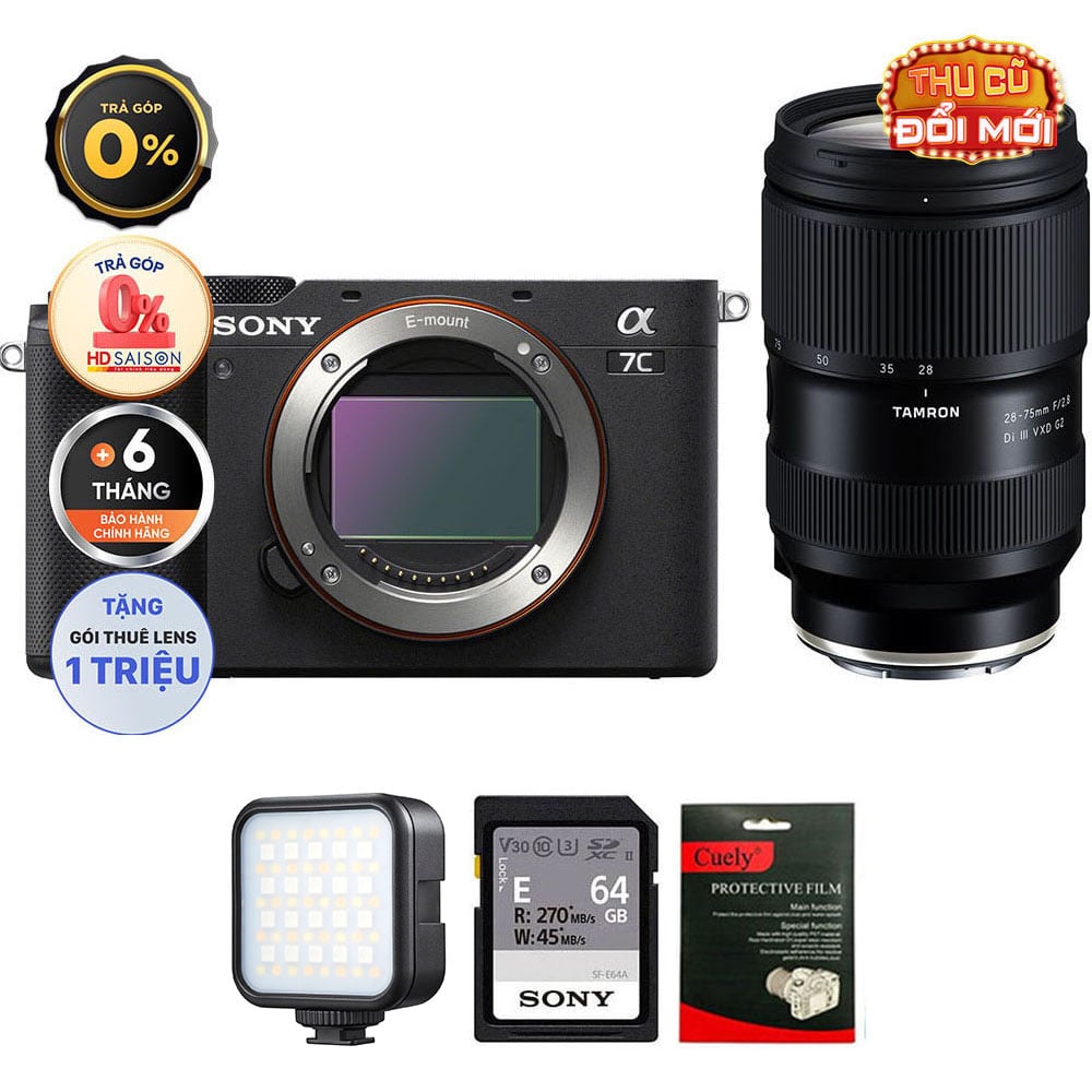 Sony A7C (Chính hãng) (Body Only, Black, Thẻ Nhớ 64GB + Đèn LED)