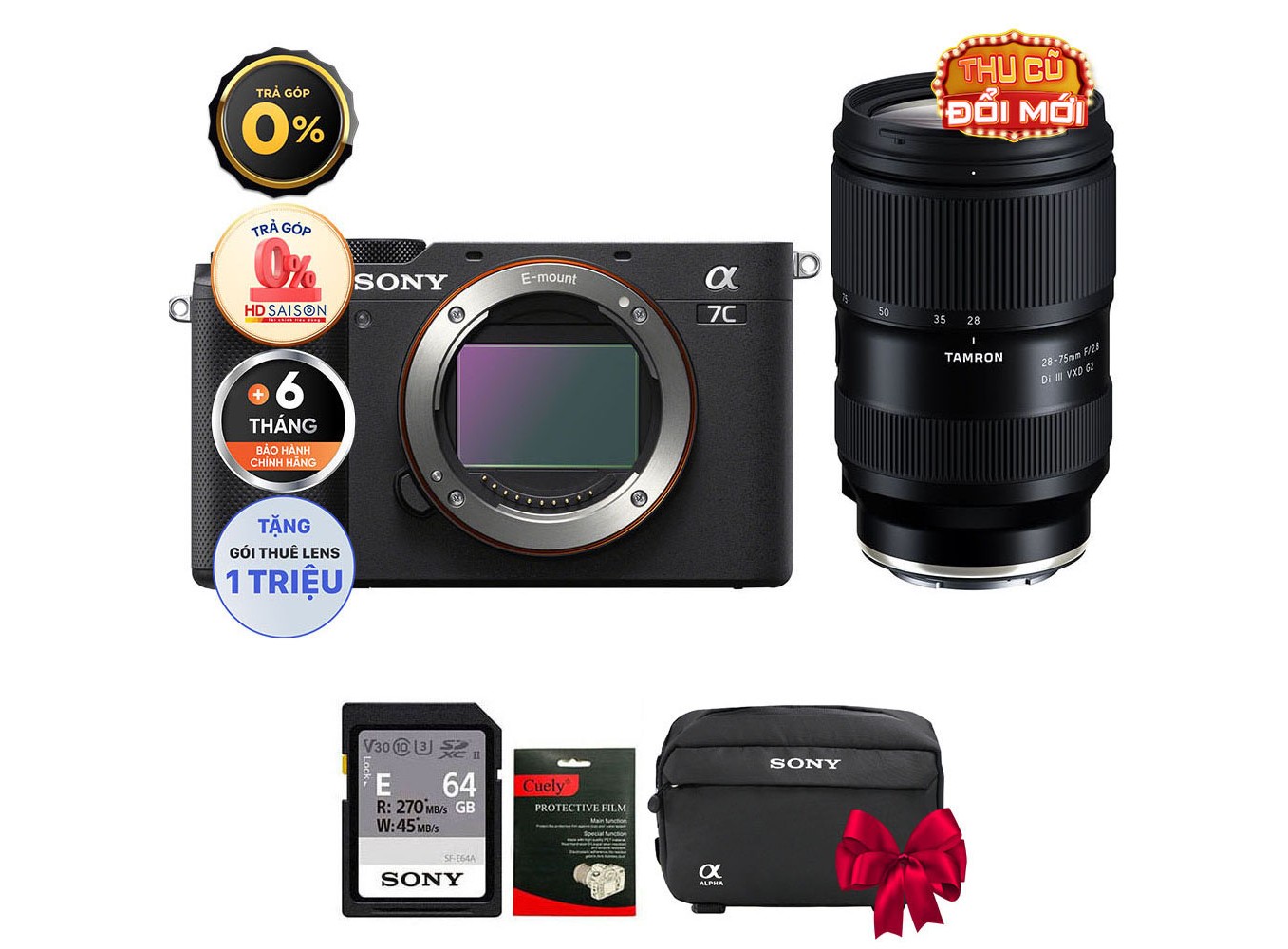 Sony A7C (Chính hãng) (Kèm Lens Tamron 28-75mm f/2.8 G2, Black, Thẻ Nhớ 64GB + Túi Máy Ảnh)