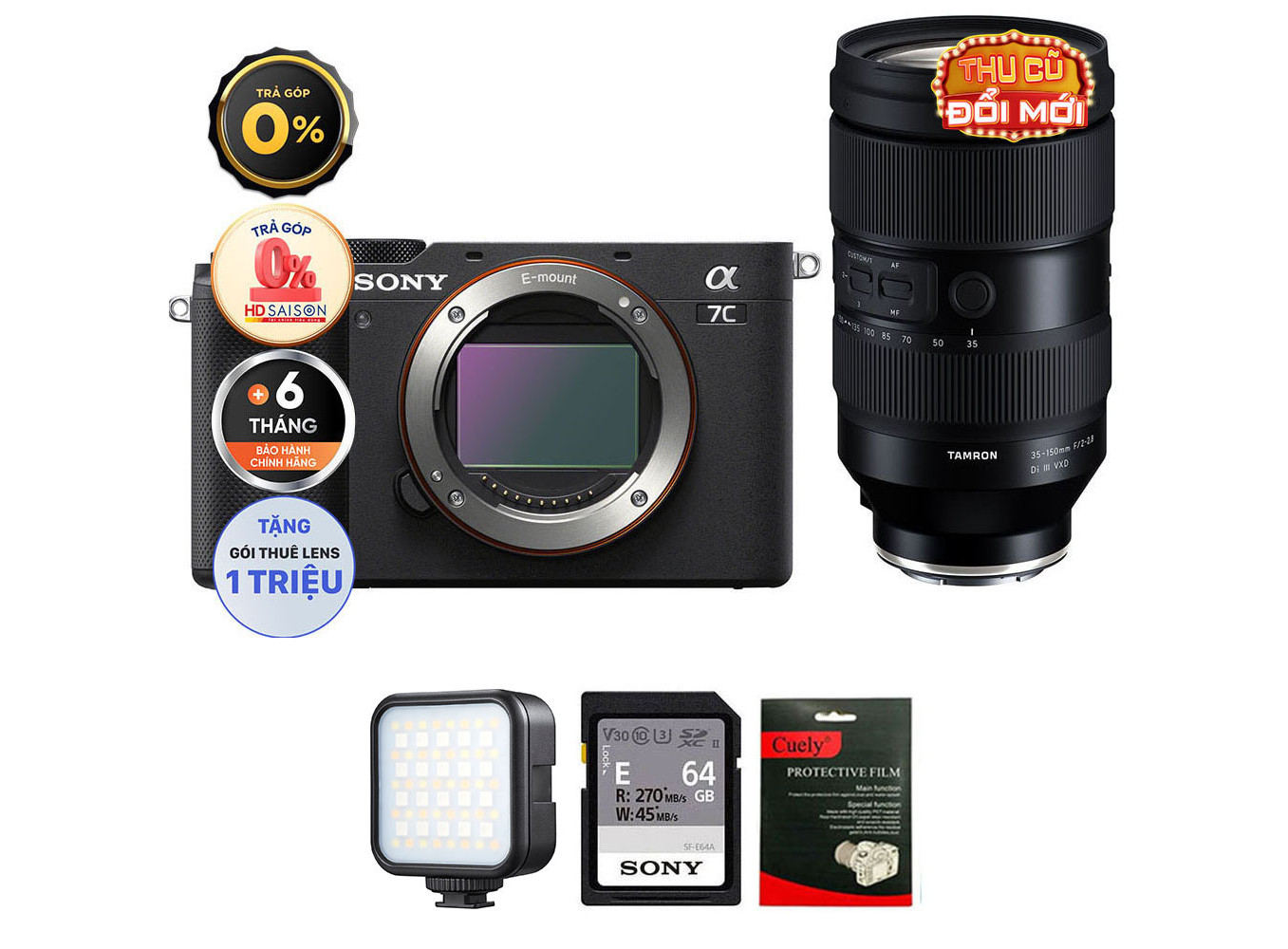 Sony A7C (Chính hãng) (Kèm Lens Tamron 35-150mm f/2-2.8, Black, Thẻ Nhớ 64GB + Đèn LED)