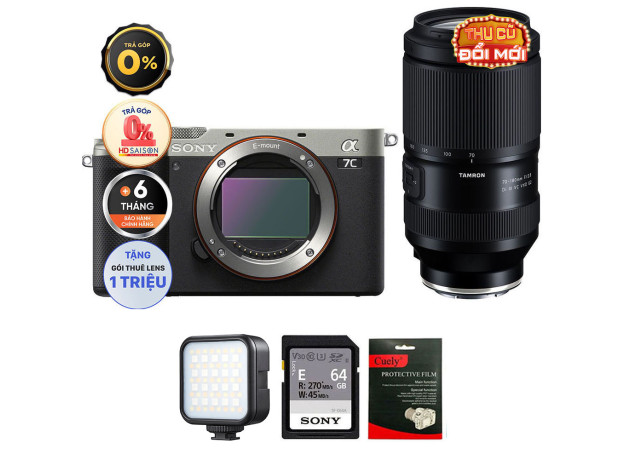 Sony A7C (Chính hãng) (Kèm Lens Tamron 70-180mm f/2.8 G2, Silver, Thẻ Nhớ 64GB + Đèn LED)