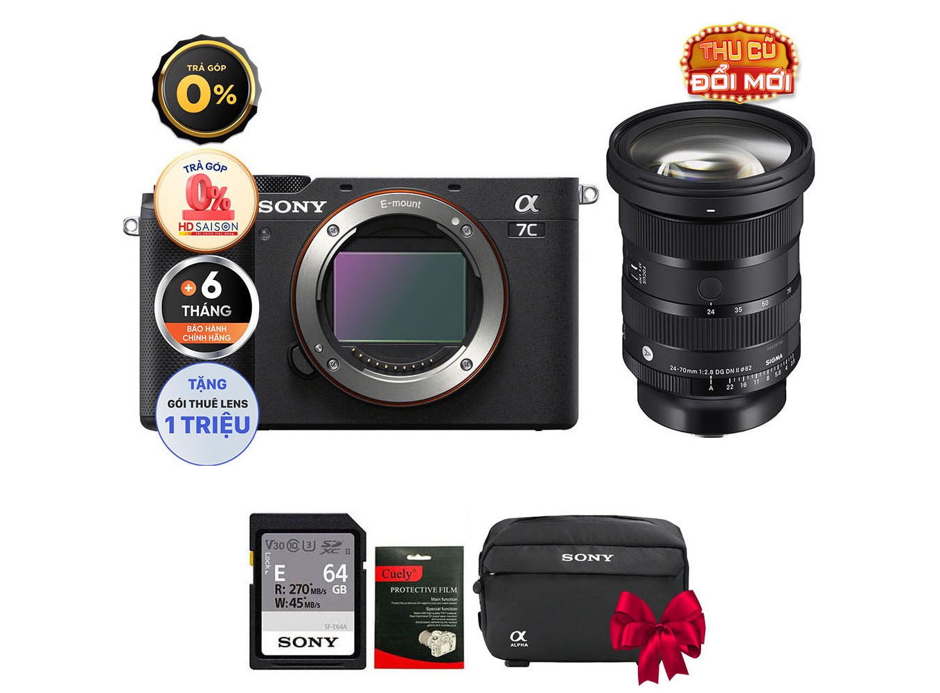 Sony A7C (Chính hãng) (Kèm Lens Sigma 24-70mm f/2.8 II, Black, Thẻ Nhớ 64GB + Túi Máy Ảnh)