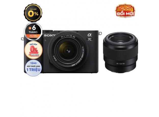 Sony A7C (Chính hãng) (Kèm Kit Lens 28-60mm + Sony FE 50mm f/1.8, Black, Không Kèm Quà)