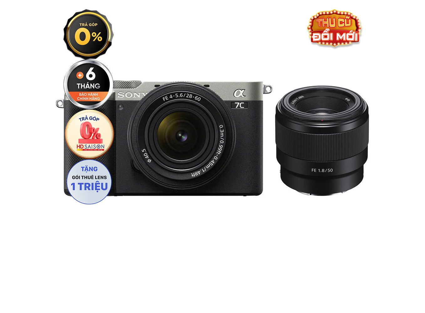 Sony A7C (Chính hãng) (Kèm Kit Lens 28-60mm + Sony FE 50mm f/1.8, Silver, Không Kèm Quà)