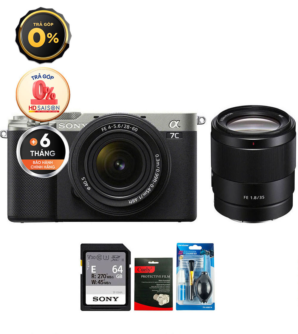 Nhỏ gọn và đầy khả năng, Sony A7C hòa trộn chất lượng và các ưu điểm của cảm biến full frame với thiết kế thân máy đặc biệt gọn gàng, linh động. Trang bị cảm biến CMOS BSI Exmor R 24.2MP, máy ảnh A7C cung cấp các tính năng kết hợp để phù hợp với cả chụp ảnh tĩnh và quay phim bên cạnh kiểu dáng phù hợp di chuyển cả ngày, hàng ngày.