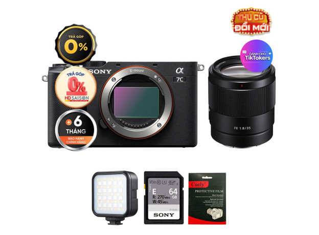 Sony A7C + FE 35mm f/1.8 (Chính hãng) (Thẻ Nhớ 64GB + Đèn LED)