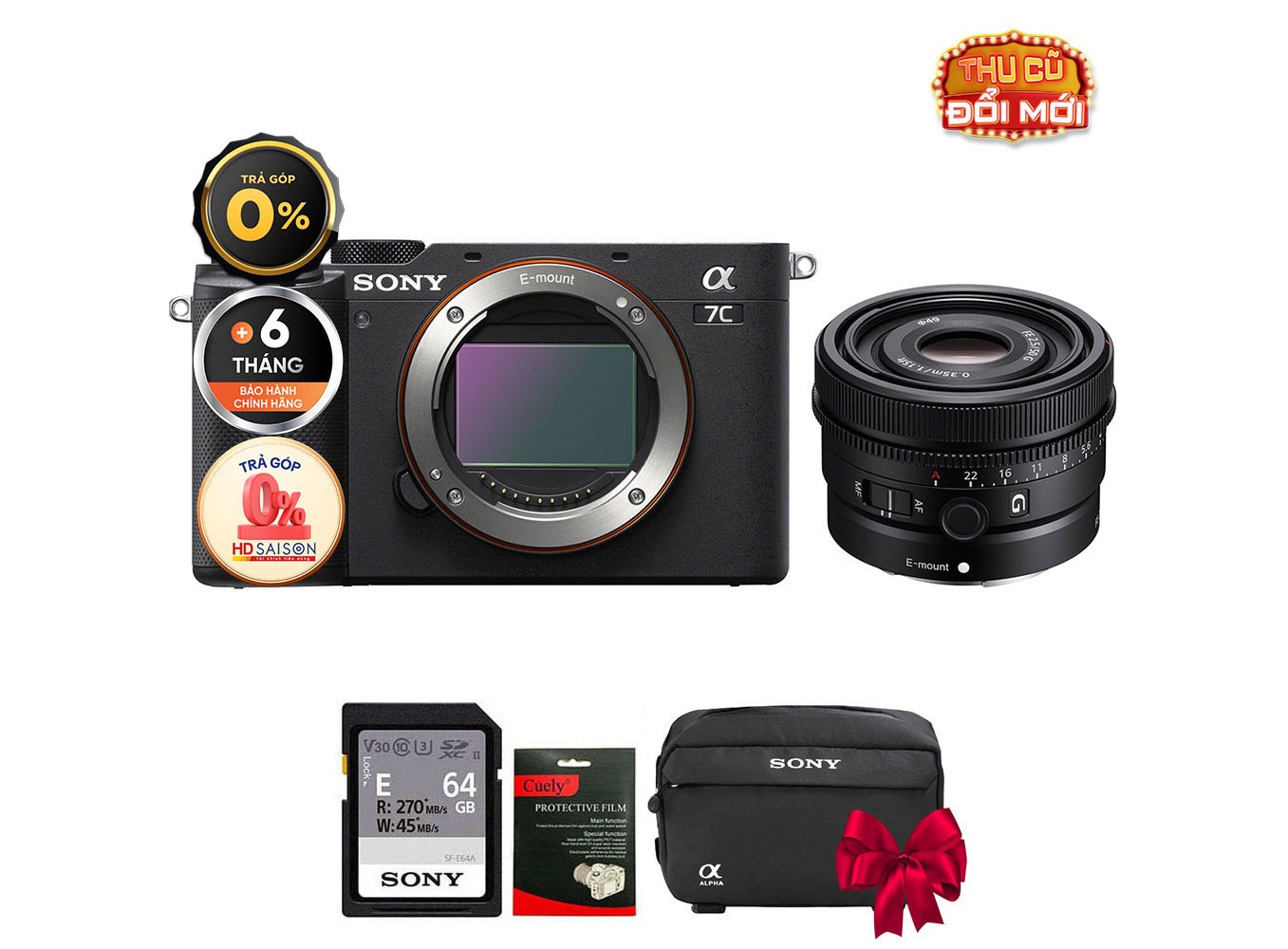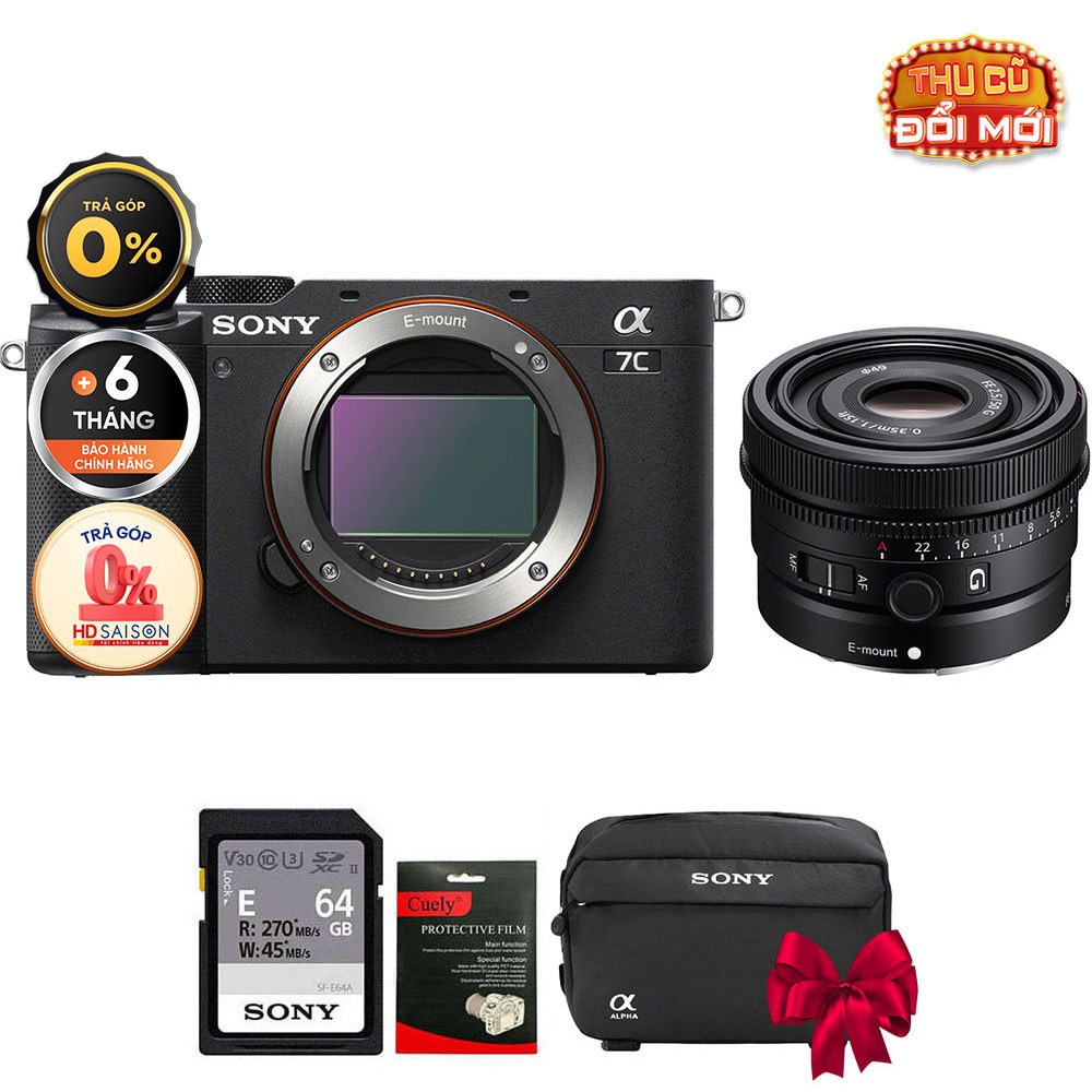 Sony A7C + FE 50mm f/2.5 G (Chính hãng) (Thẻ Nhớ 64GB + Túi Máy Ảnh)