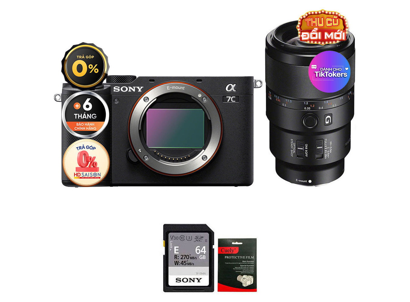 Sony A7C + FE 90mm f/2.8 Macro (Chính hãng) (Thẻ Nhớ 64GB + Dán Màn Hình)