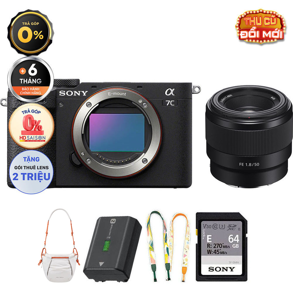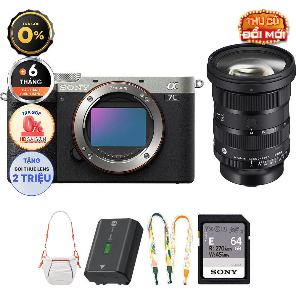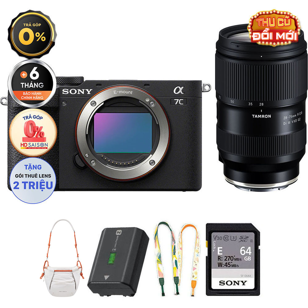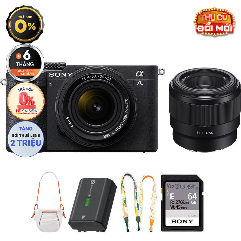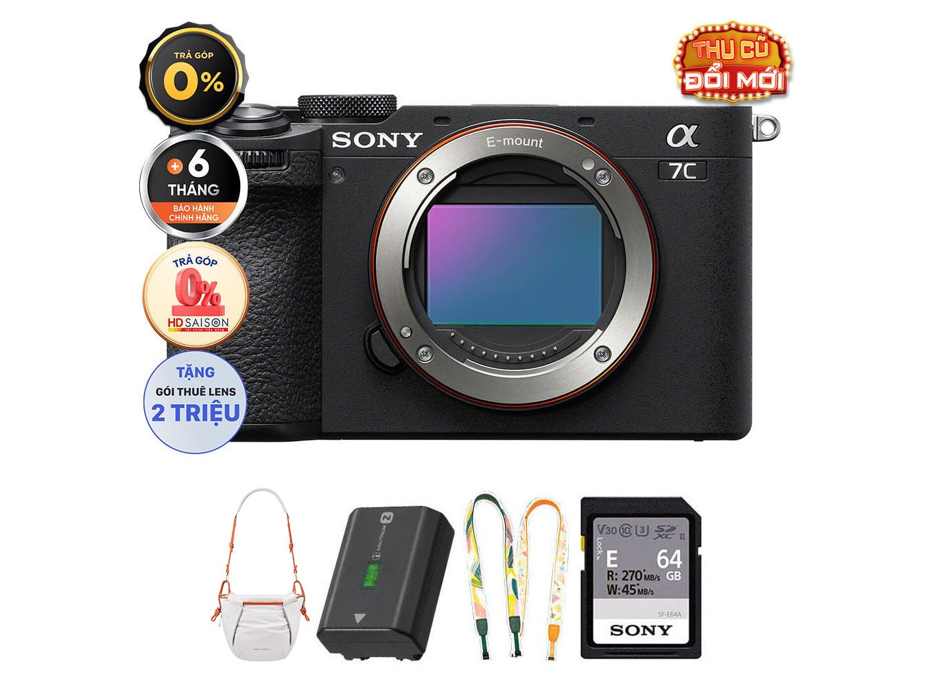 Sony A7C II (Chính hãng) (Body Only, Black, Pin + Thẻ Nhớ 64GB + Dây Đeo + Túi Máy Ảnh)