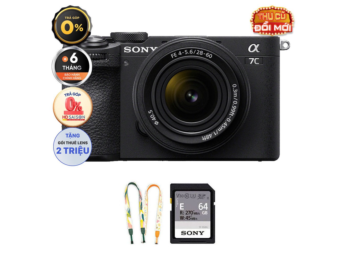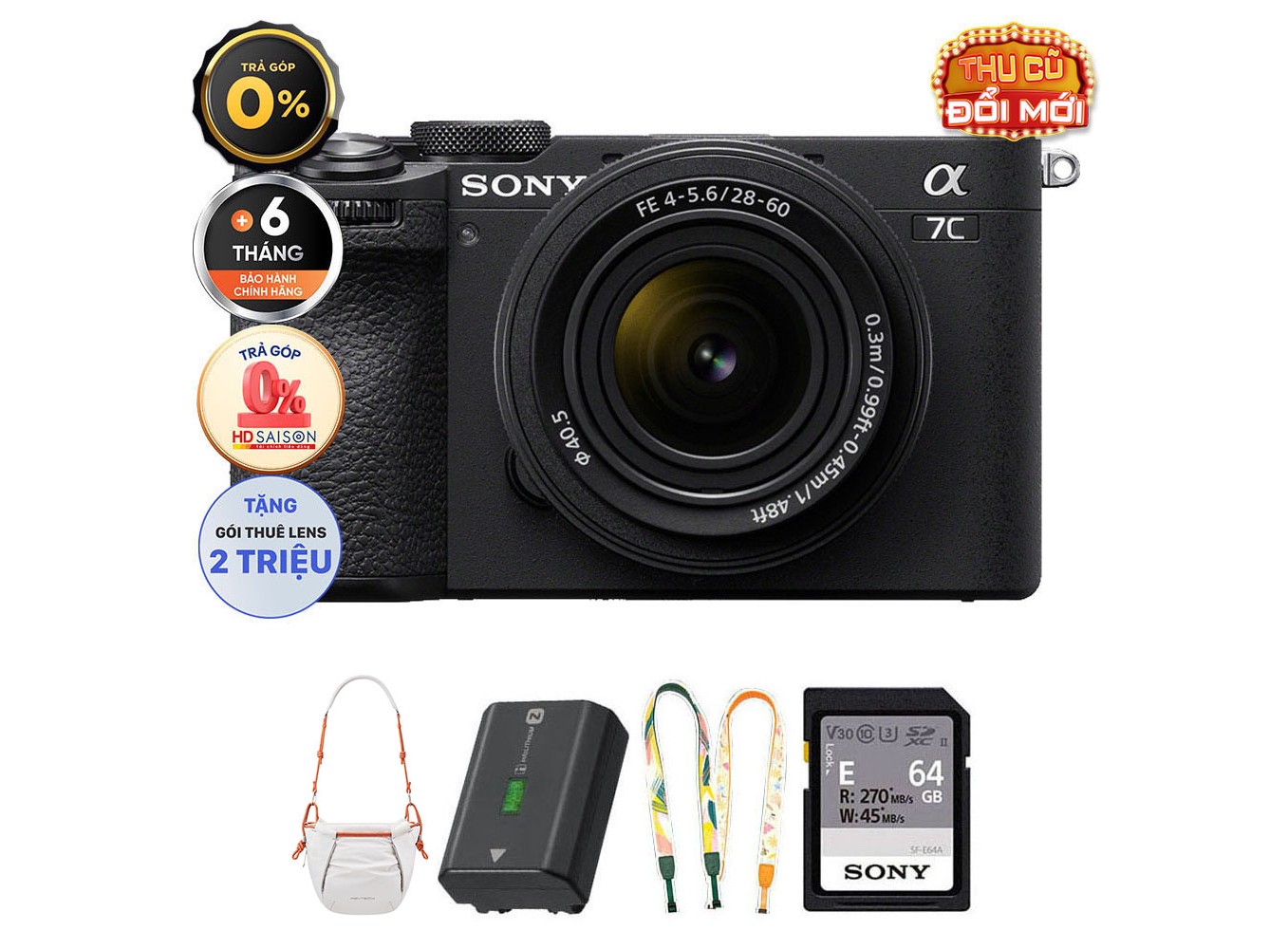 Sony A7C II (Chính hãng) (Kèm Kit Lens 28-60mm, Black, Pin + Thẻ Nhớ 64GB + Dây Đeo + Túi Máy Ảnh)