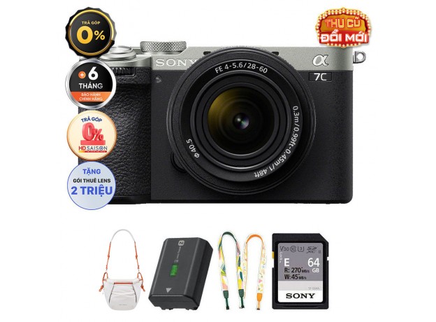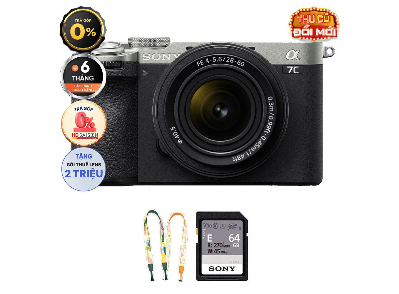 Sony A7C II (Chính hãng) (Kèm Kit Lens 28-60mm, Silver, Pin + Thẻ Nhớ 64GB + Dây Đeo + Túi Máy Ảnh)