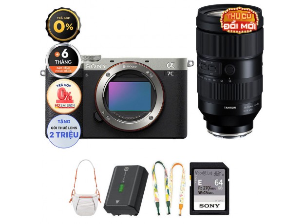 Sony A7C II (Chính hãng) (Kèm Lens Tamron 35-150mm f/2-2.8, Silver, Pin + Thẻ Nhớ 64GB + Dây Đeo + Túi Máy Ảnh)