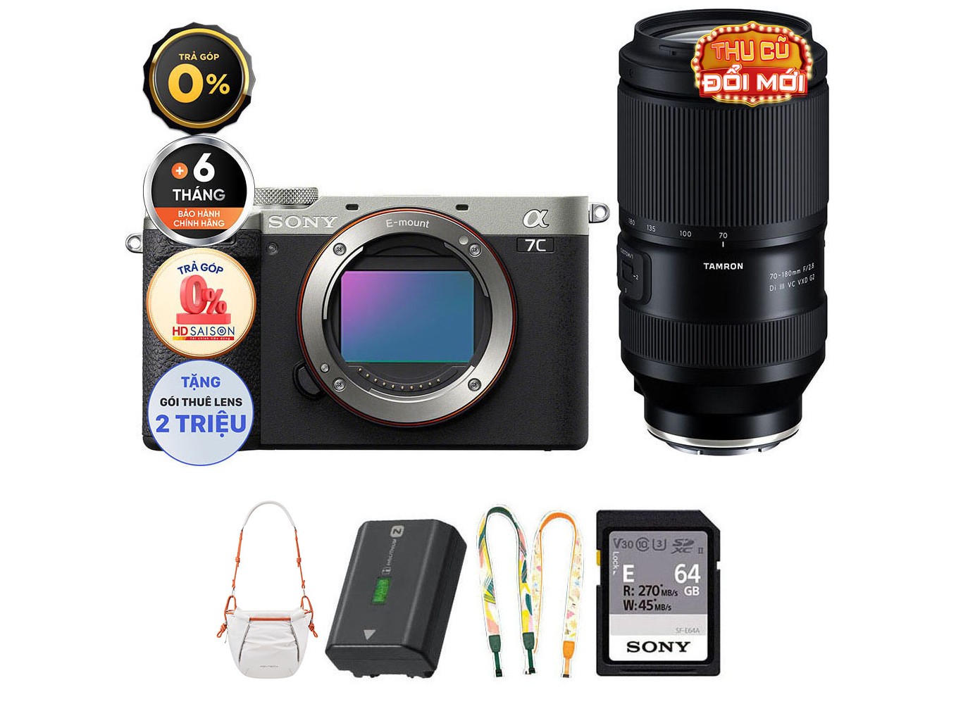Sony A7C II (Chính hãng) (Kèm Lens Tamron 70-180mm f/2.8 G2, Silver, Pin + Thẻ Nhớ 64GB + Dây Đeo + Túi Máy Ảnh)
