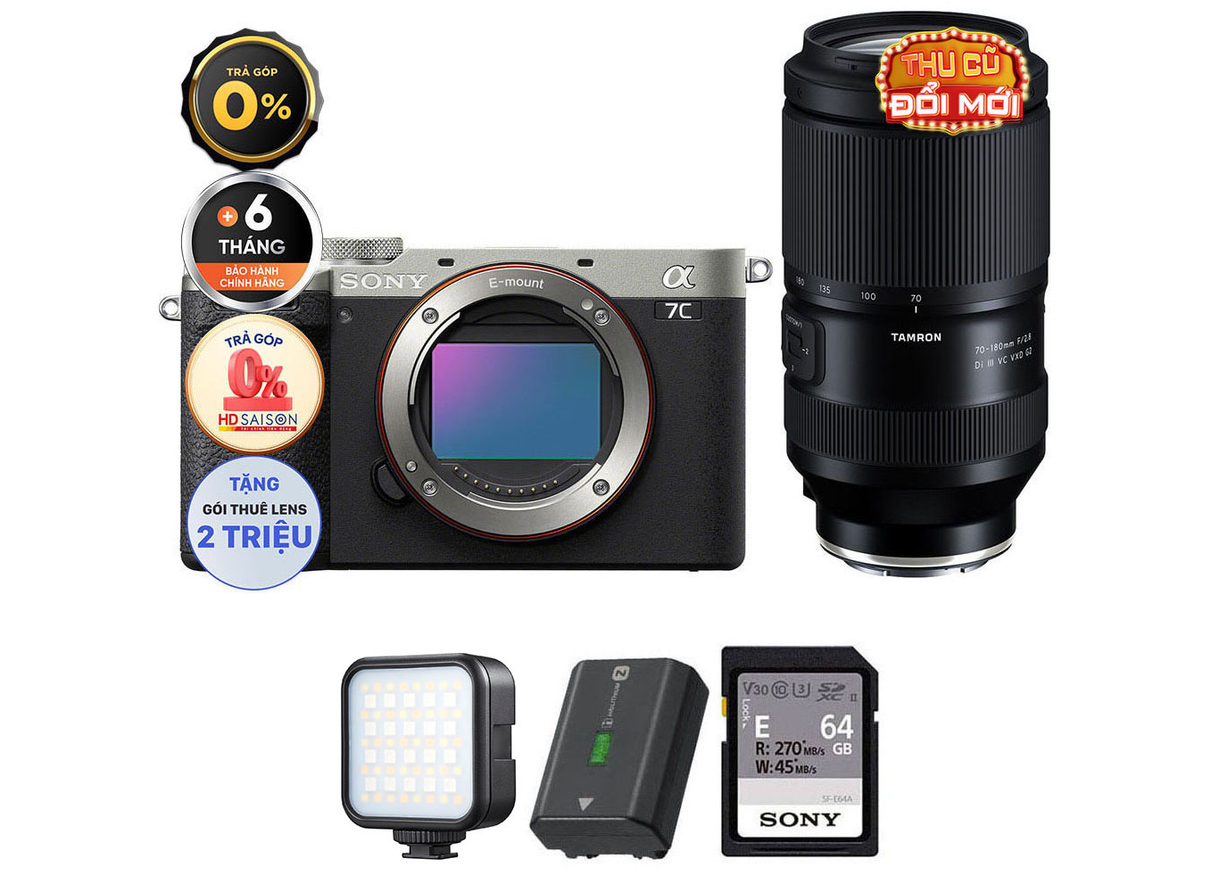 Pin + Thẻ Nhớ 64GB + Đèn LED
