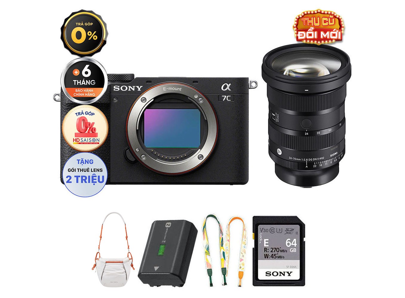 Sony A7C II (Chính hãng) (Kèm Lens Sigma 24-70mm f/2.8 II, Black, Pin + Thẻ Nhớ 64GB + Dây Đeo + Túi Máy Ảnh)