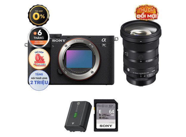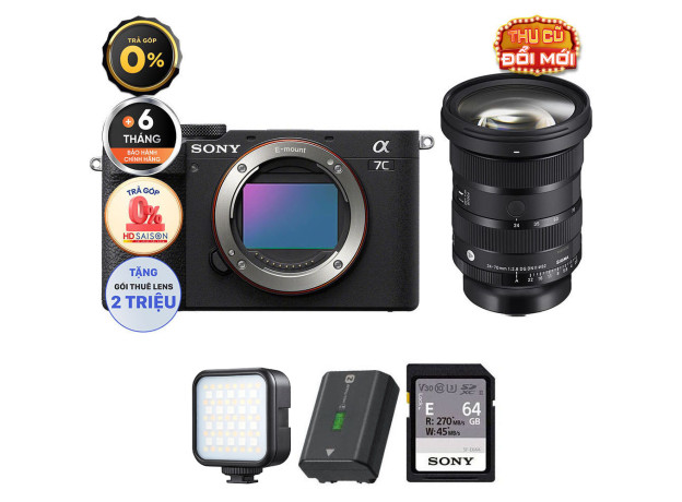 Sony A7C II (Chính hãng) (Kèm Lens Sigma 24-70mm f/2.8 II, Black, Pin + Thẻ Nhớ 64GB + Đèn LED)