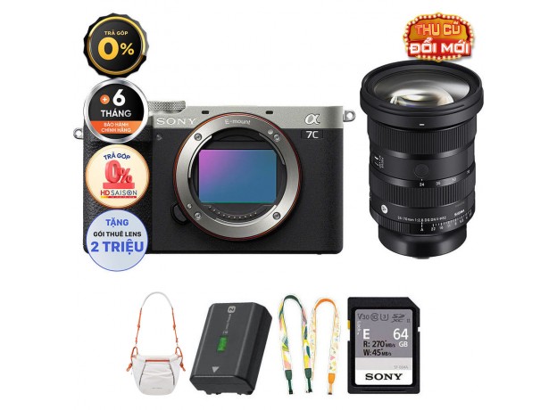 Sony A7C II (Chính hãng) (Kèm Lens Sigma 24-70mm f/2.8 II, Silver, Pin + Thẻ Nhớ 64GB + Dây Đeo + Túi Máy Ảnh)