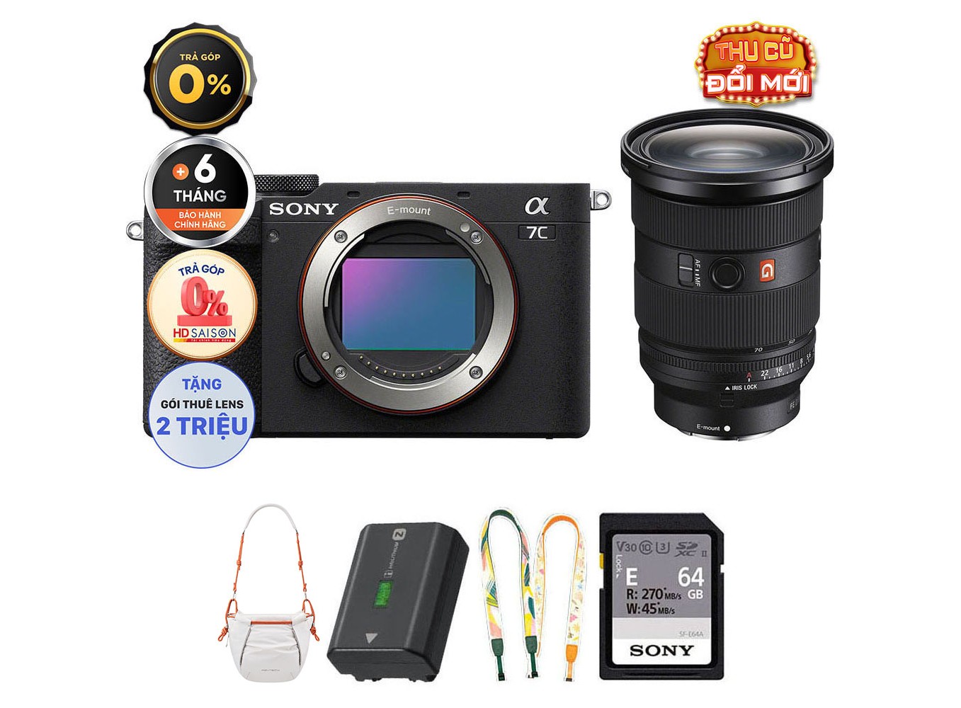 Sony A7C II (Chính hãng) (Kèm Lens Sony FE 24-70mm f/2.8 GM II, Black, Pin + Thẻ Nhớ 64GB + Dây Đeo + Túi Máy Ảnh)