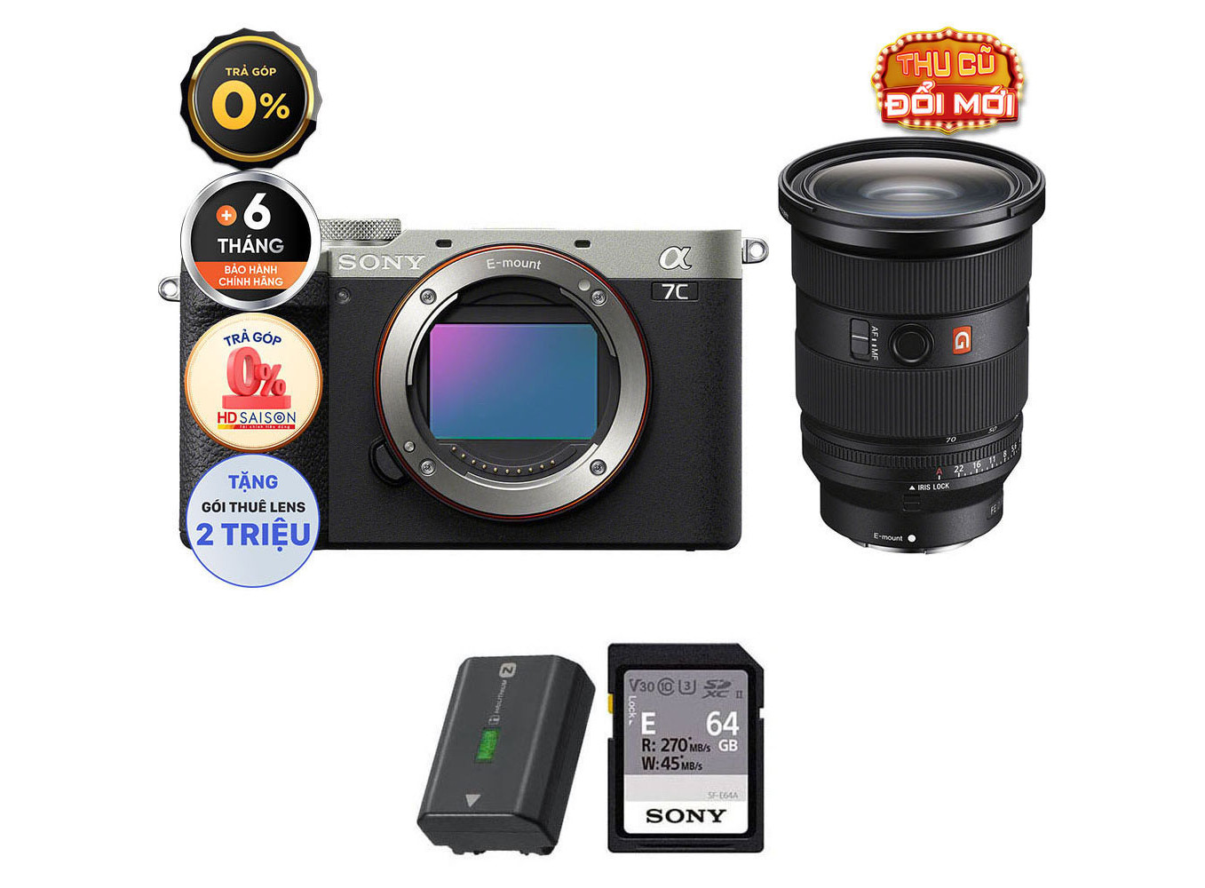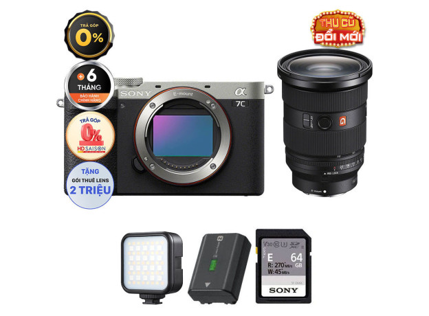 Sony A7C II (Chính hãng) (Kèm Lens Sony FE 24-70mm f/2.8 GM II, Silver, Pin + Thẻ Nhớ 64GB + Đèn LED)