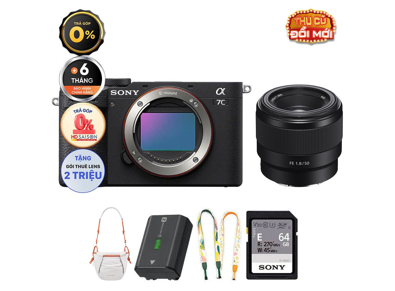 Sony A7C II (Chính hãng) (Kèm Lens Sony FE 50mm f/1.8, Black, Pin + Thẻ Nhớ 64GB + Dây Đeo + Túi Máy Ảnh)