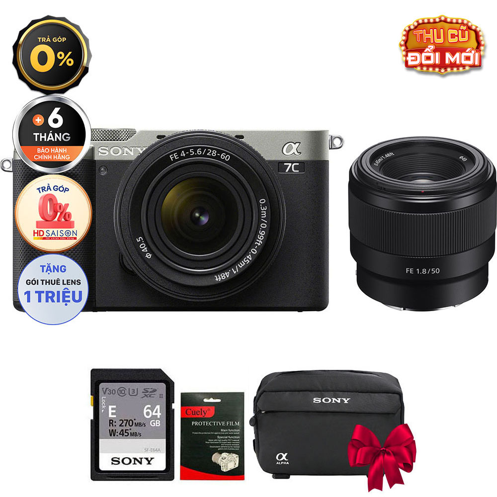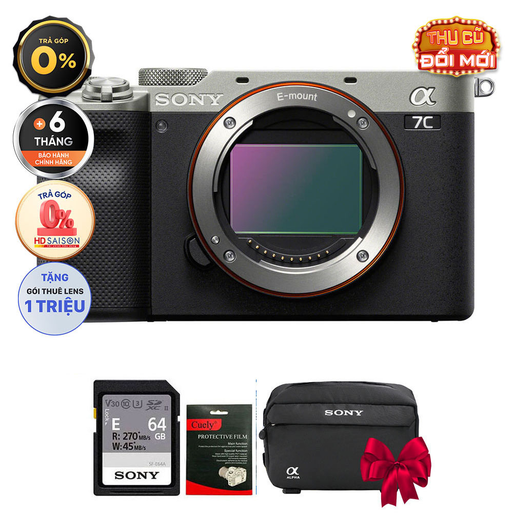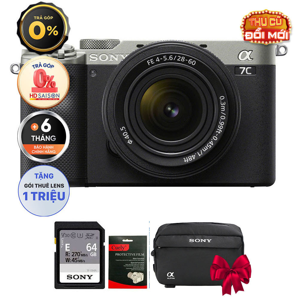 Sony A7C - Likenew (Kèm Kit Lens 28-60mm, Silver, Thẻ Nhớ 32GB + Dán Màn Hình)